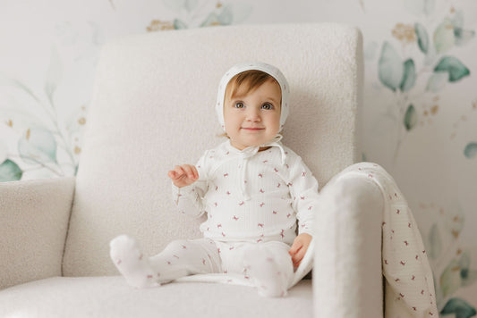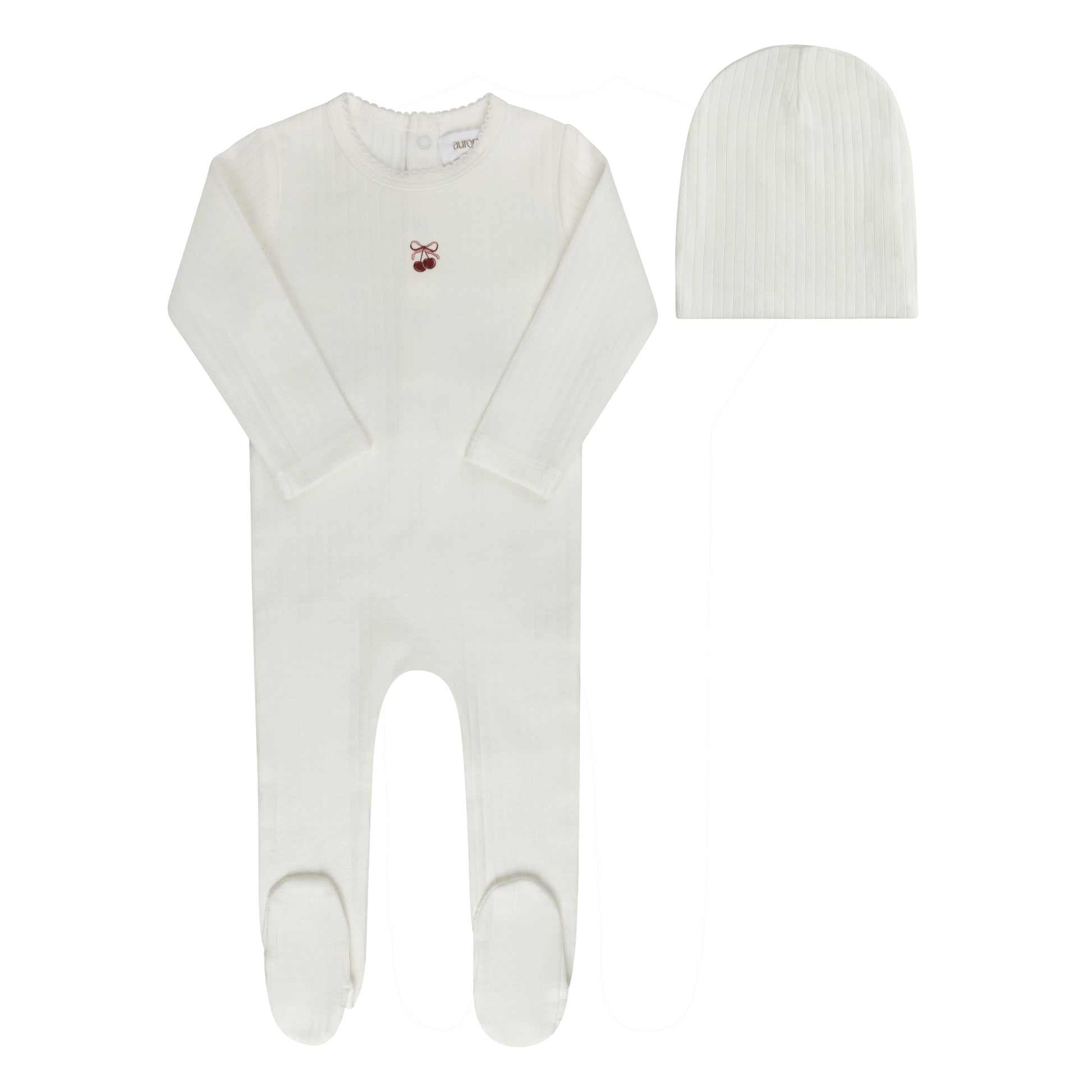 AURORA IVORY/RED BOW FOOTIE + BEANIE