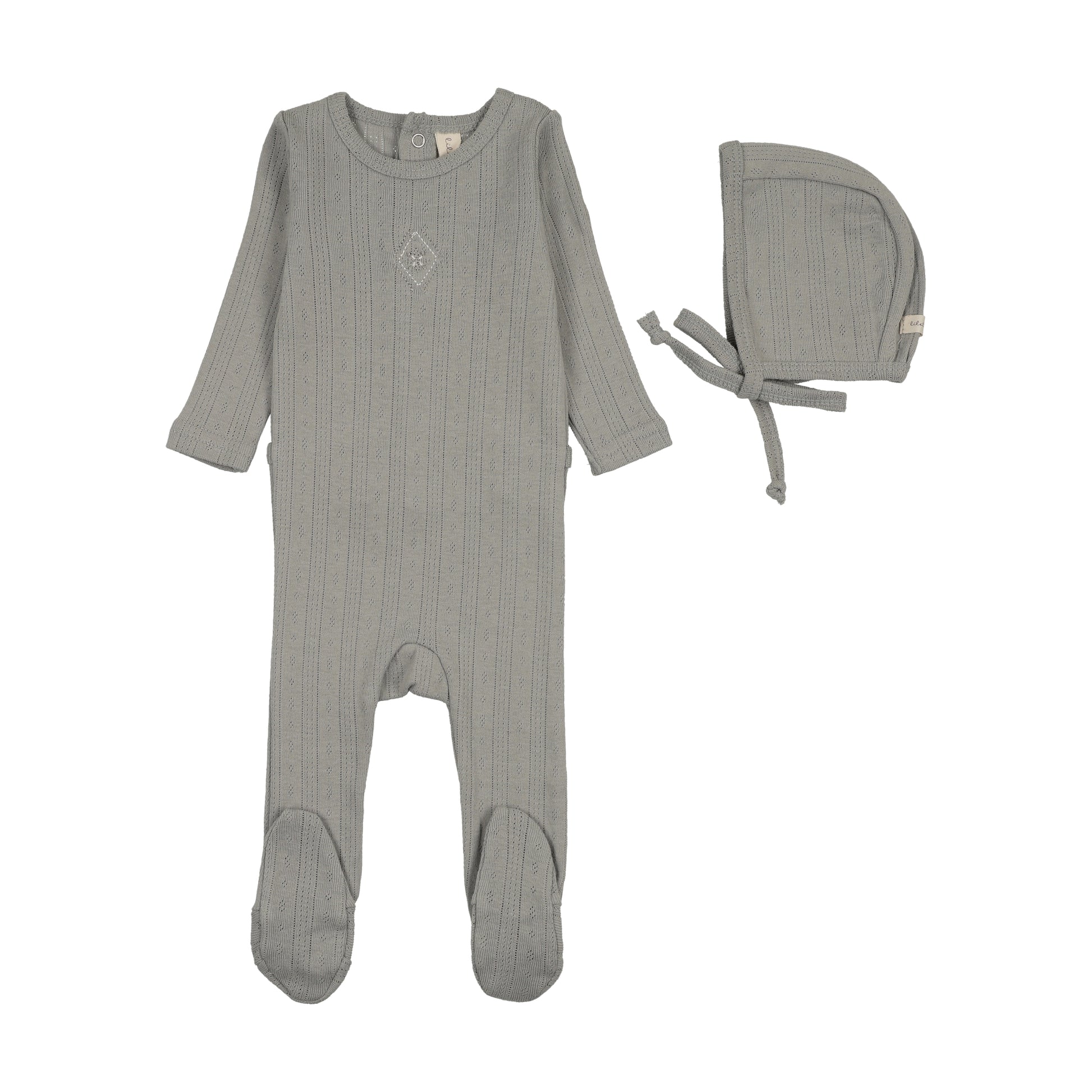 LILETTE DUSTY BLUE POINTELLE EMBROIDERED FOOTIE SET