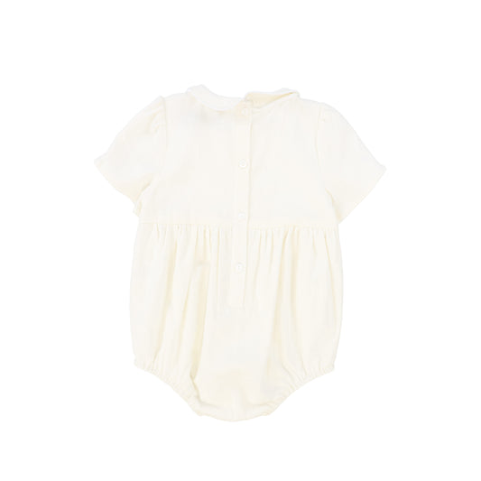FRANCESCA GUILIANO IVORY LINEN PINTUCK ROMPER