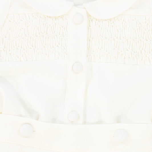 FRANCESCA GUILIANO IVORY LINEN SMOCKED COLLAR SET