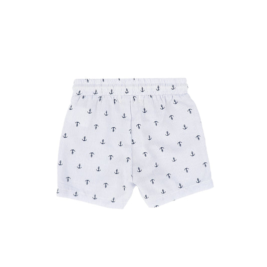 LE BOURDON BLUE ANCHOR PRINT SEERSUCKER SHORTS