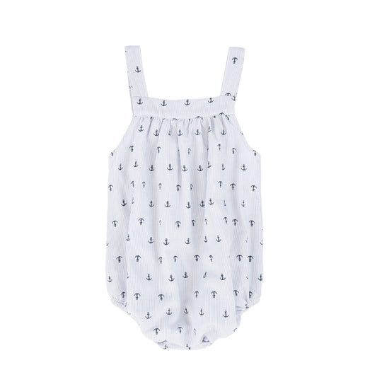 LE BOURDON BLUE ANCHOR PRINT SEERSUCKER ROMPER