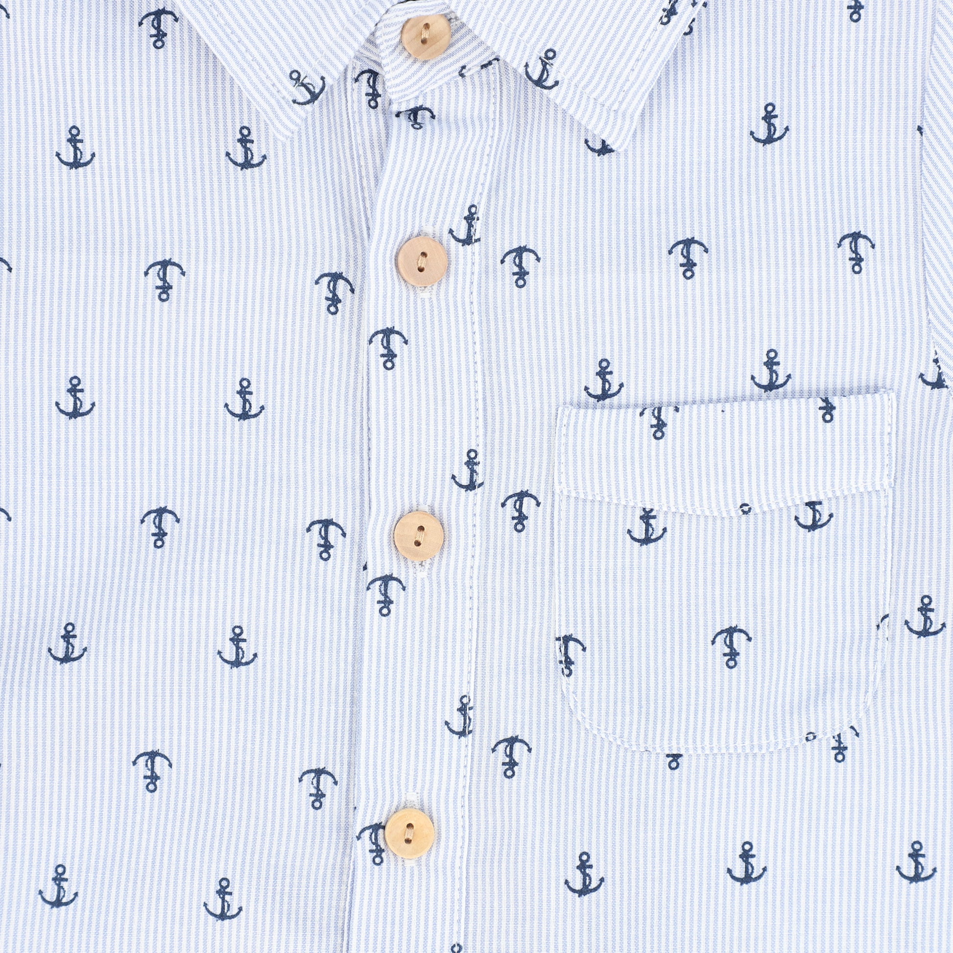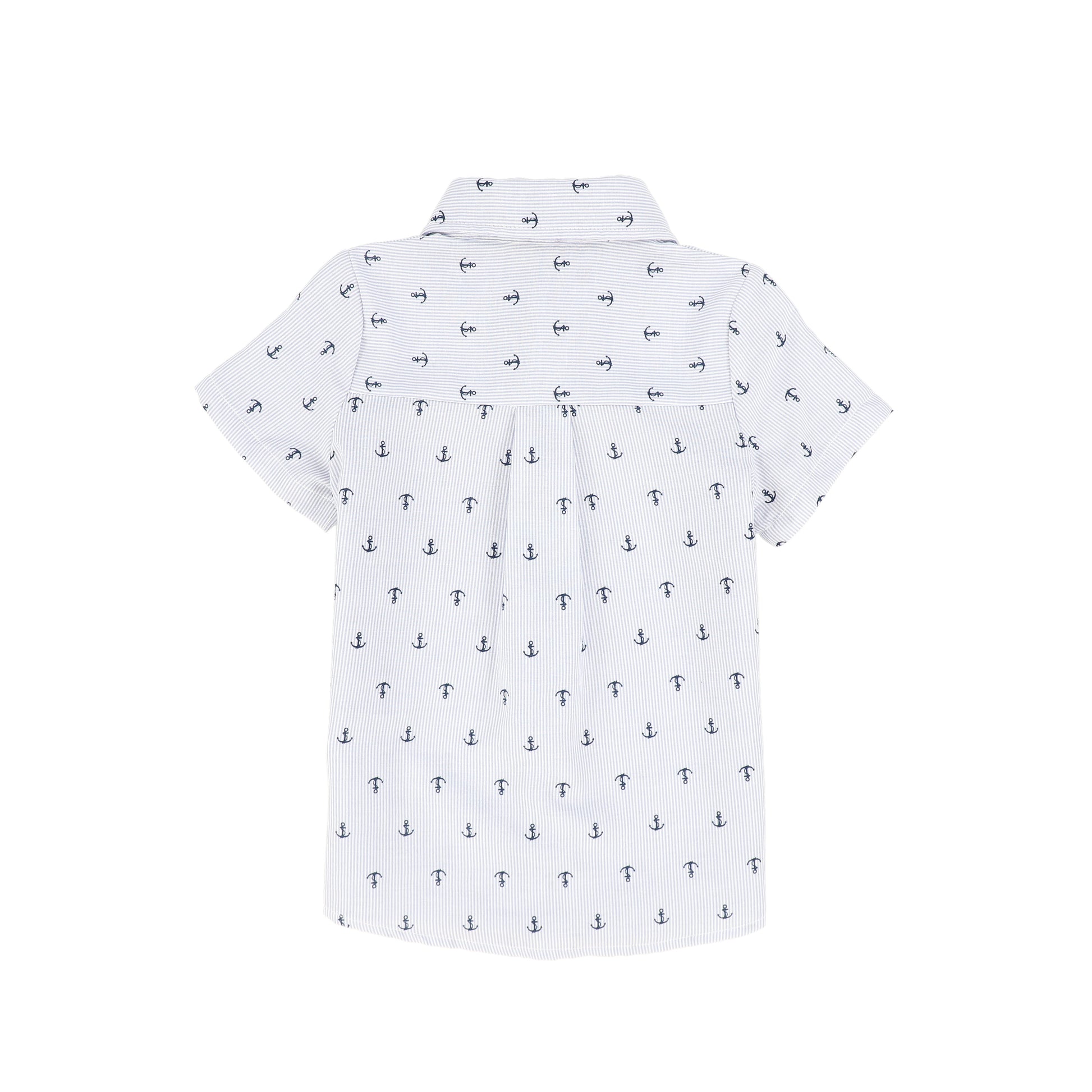 LE BOURDON BLUE ANCHOR PRINT SEERSUCKER SHIRT