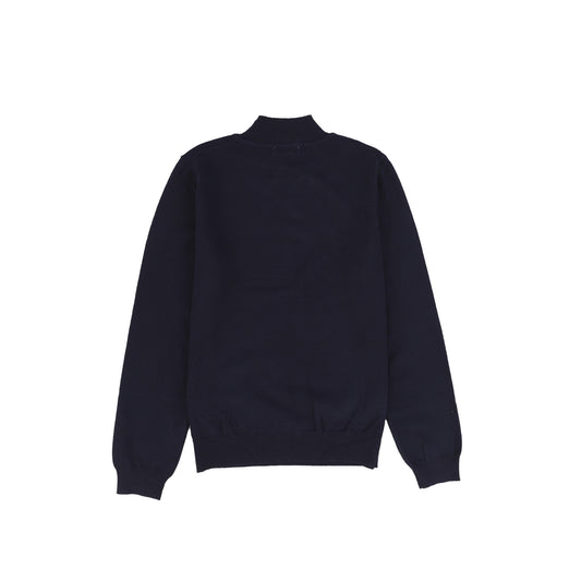 Bamboo Navy Knit Emblem Mock Neck Sweater [FINAL SALE]