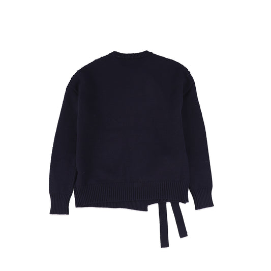 Bamboo Navy Knit Emblem Crew Neck Sweater [FINAL SALE]