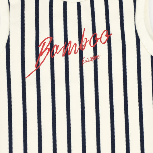 BAMBOO NAVY SCRIPT STRIPED T-SHIRT