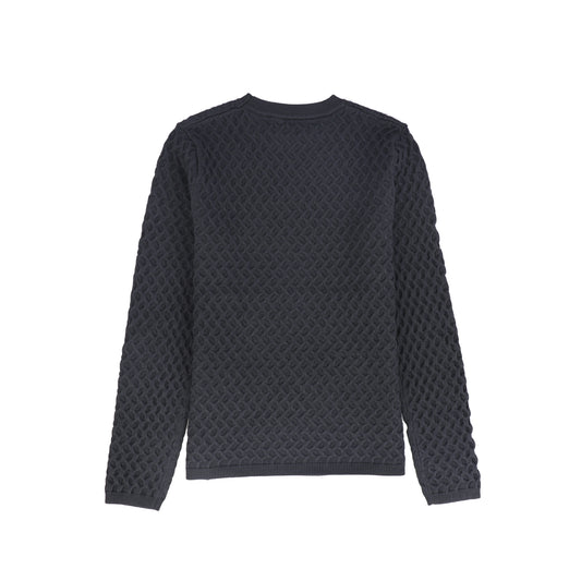 BACE COLLECTION GREY TEXTURED CROCHET KNIT SWEATER