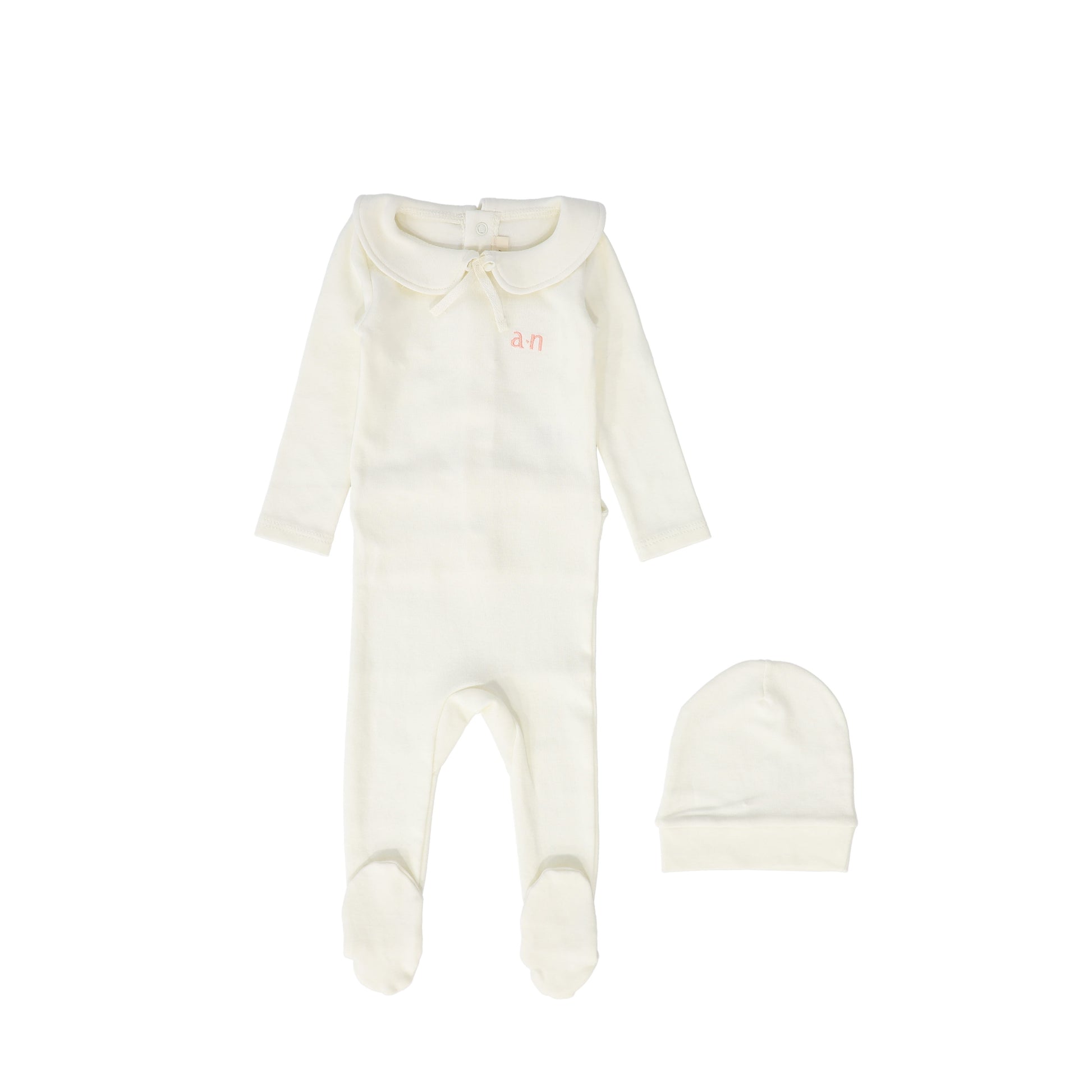 ANN OF NAN CREAM EMBROIDERED COLLAR FOOTIE SET