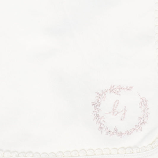 BEBE JOLEE WHITE/PINK EMBROIDERED TRIM BLANKET
