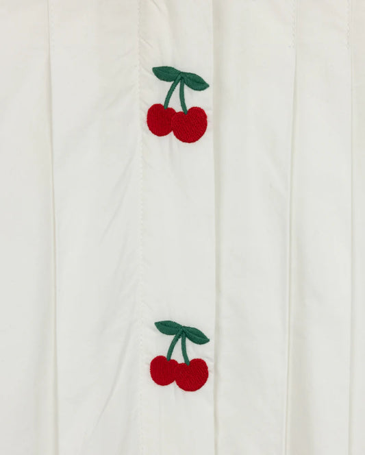 ONE CHILD WHITE EMBROIDERED CHERRY PLEAT BLOUSE
