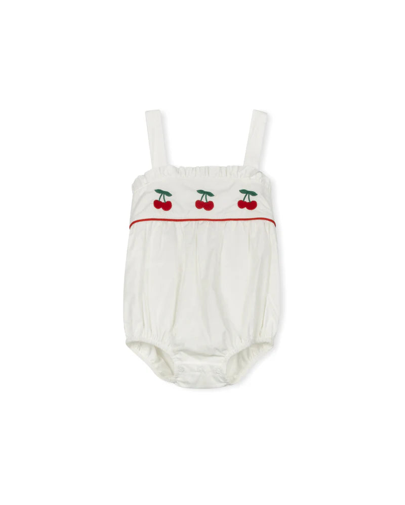 ONE CHILD WHITE EMBROIDERED CHERRY PLEAT DRESS