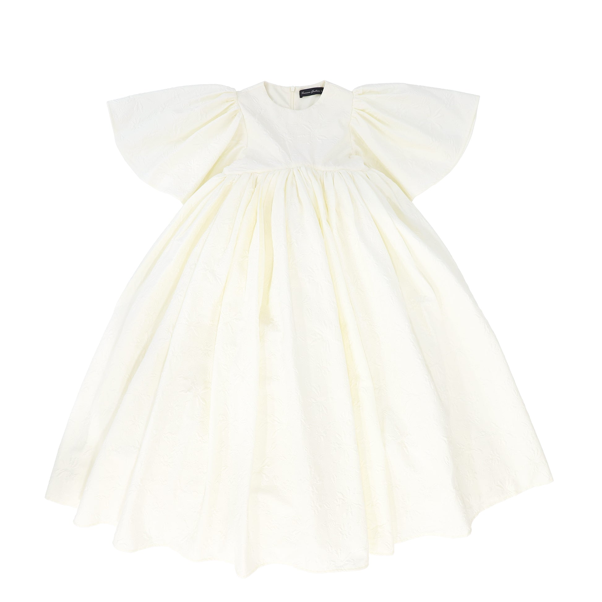 FRANCESCA GUILIANO CREAM EMBOSSED FLOWER HIGH WAIST FLUTTER SLEEVE GOWN