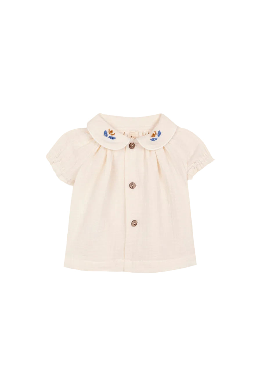 BIRINIT PETIT IVORY EMBROIDERED COLLAR BLOUSE