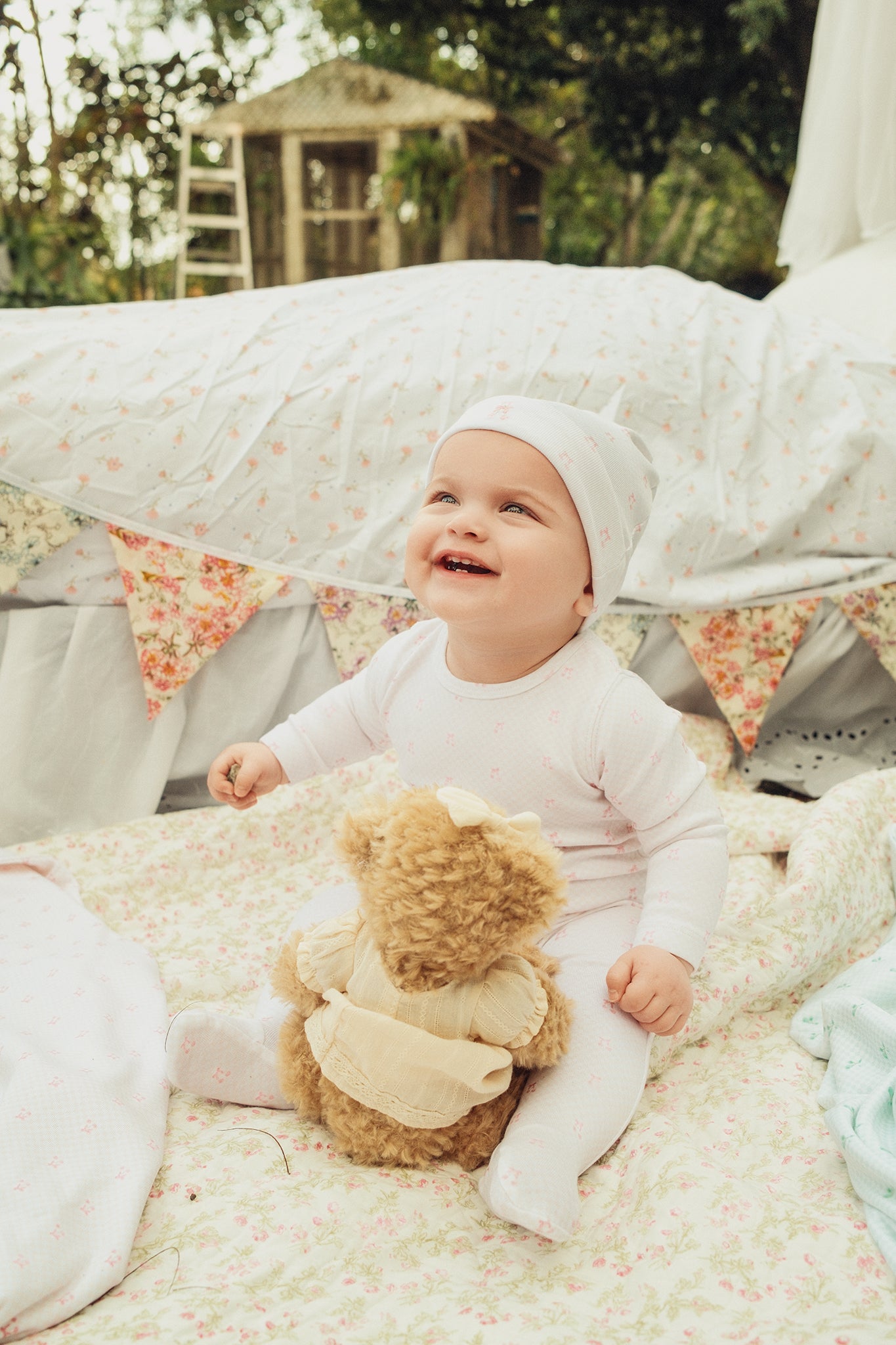LAMOUR LOU PINK CHECKED CHERRY FOOTIE + BEANIE