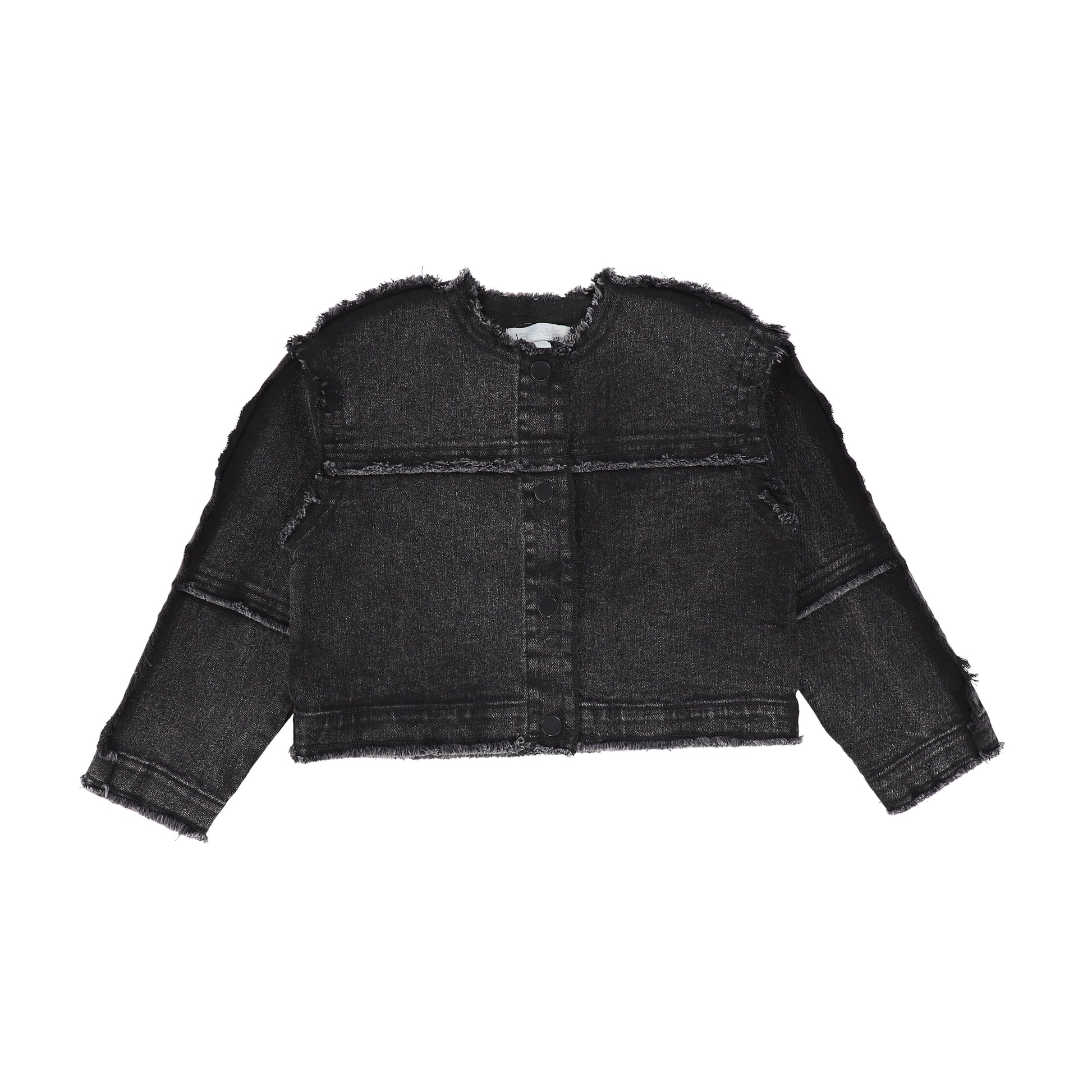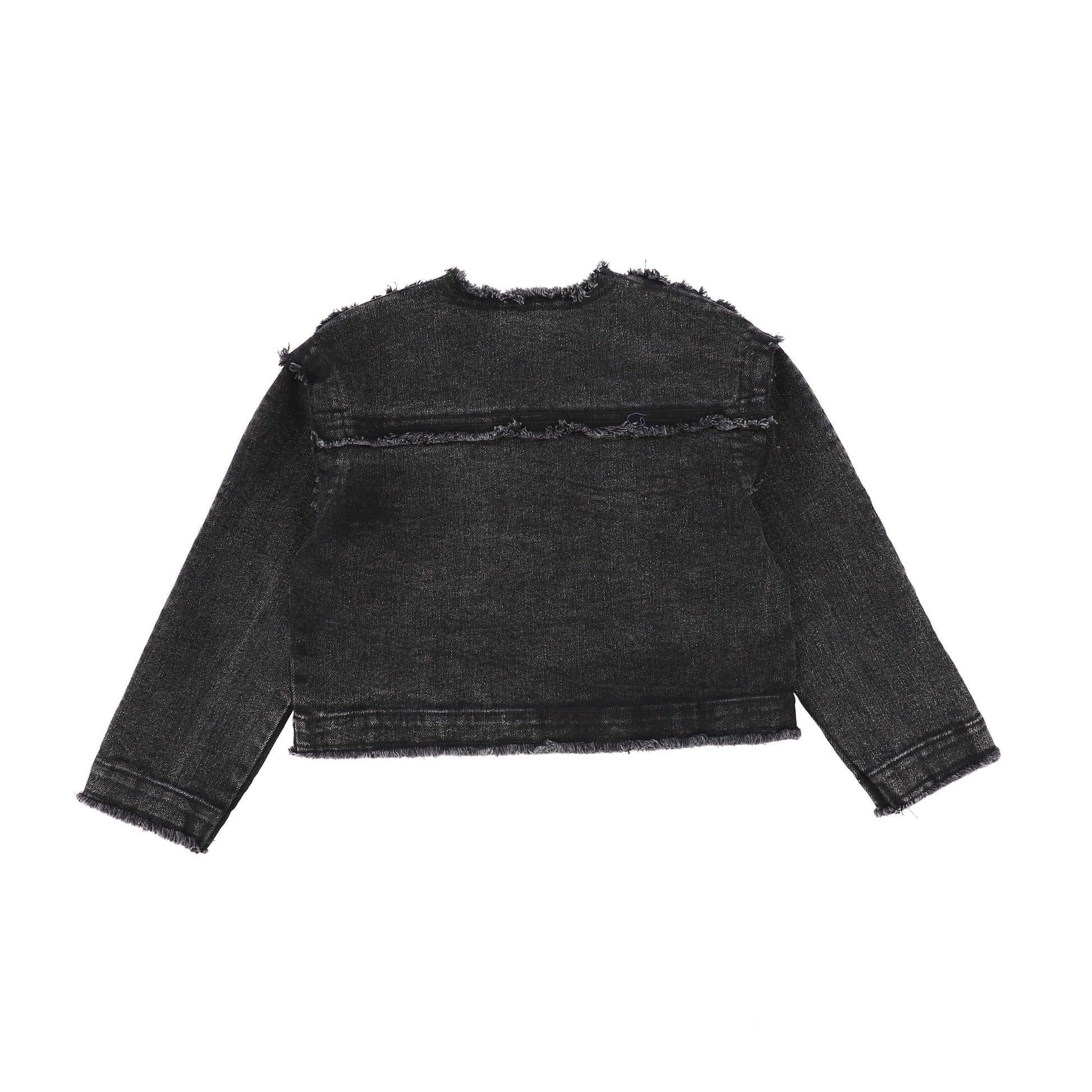 BACE COLLECTION BLACK DENIM FRAYED SEAM WORK JACKET