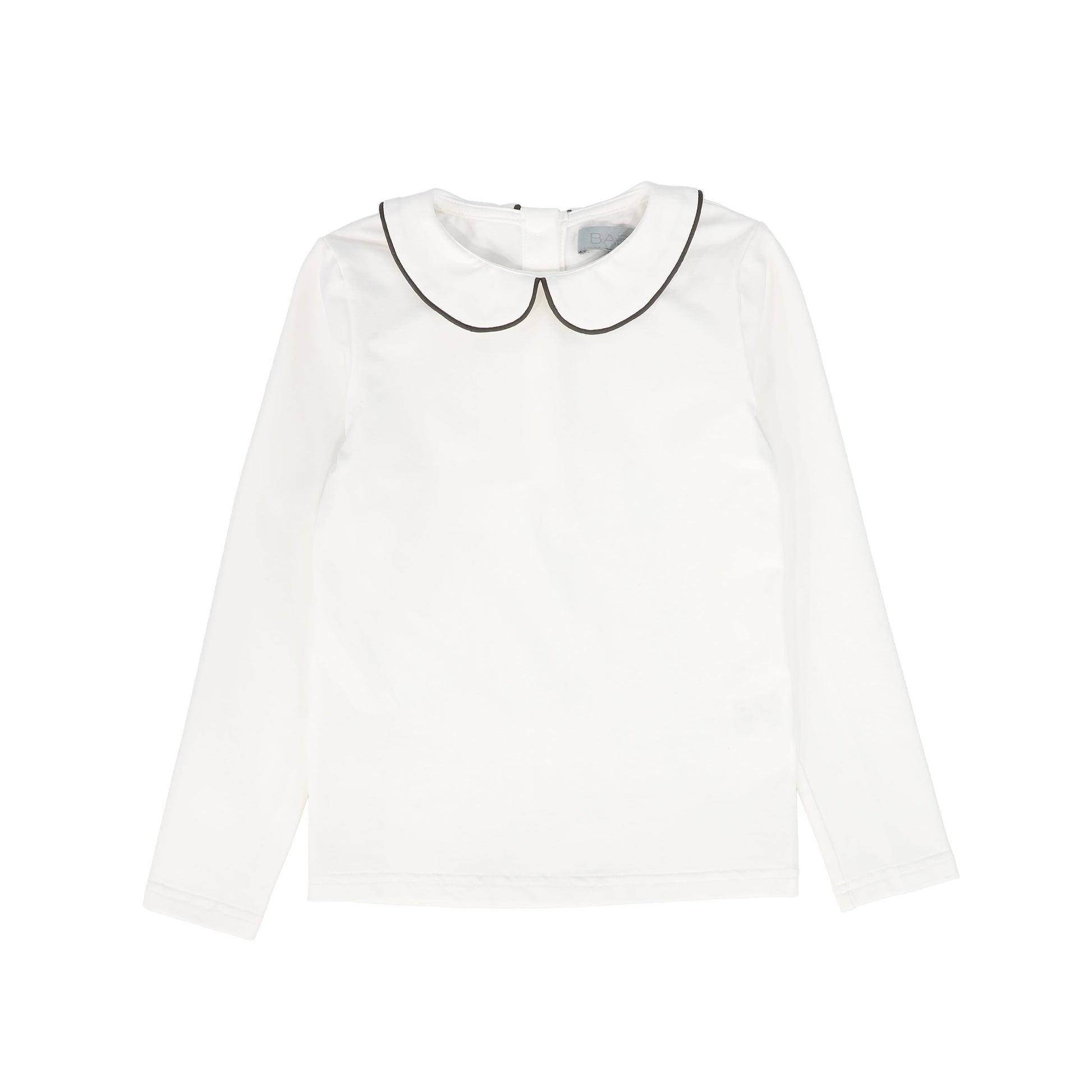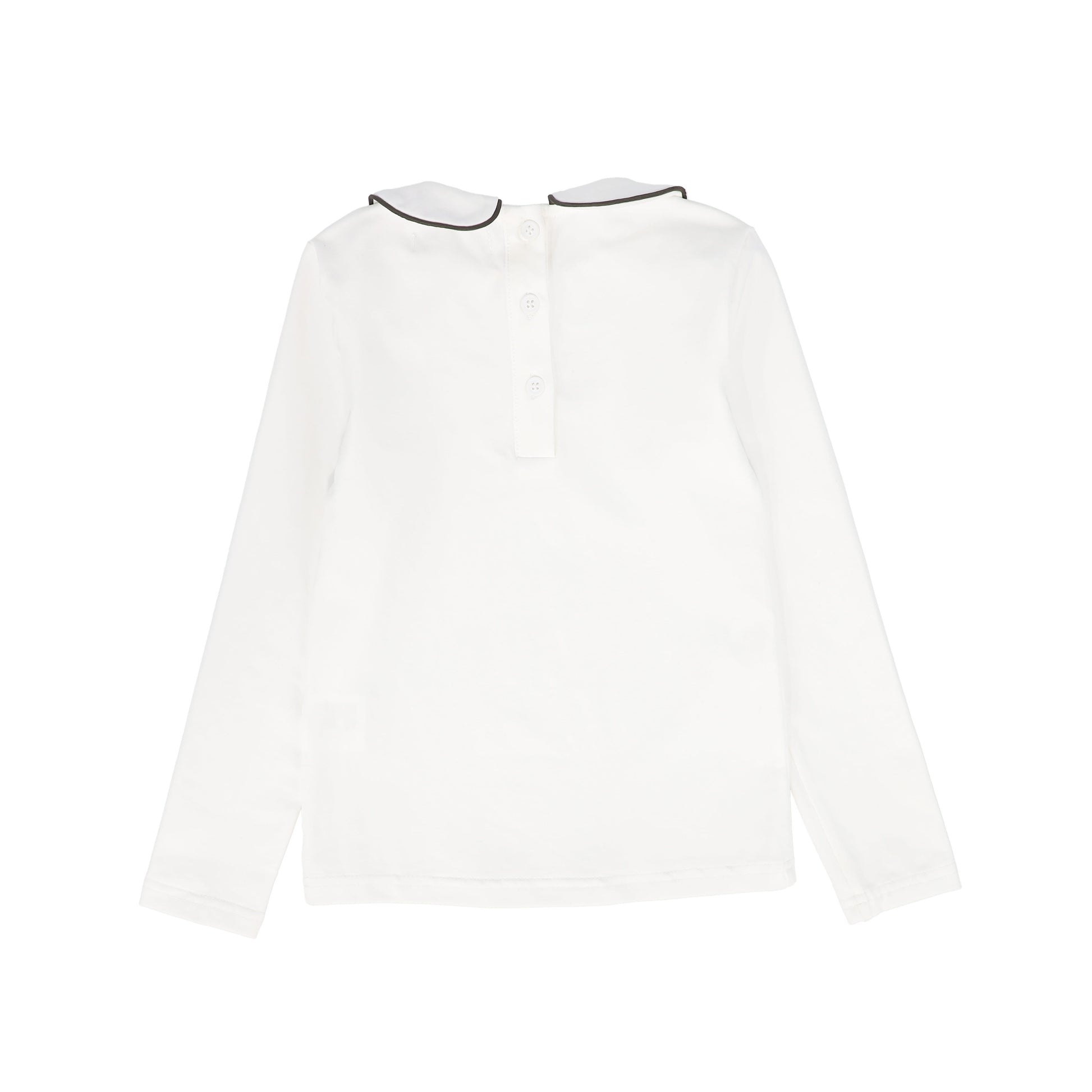 BACE COLLECTION WHITE/BROWN LONG SLEEVE PIPED TEE