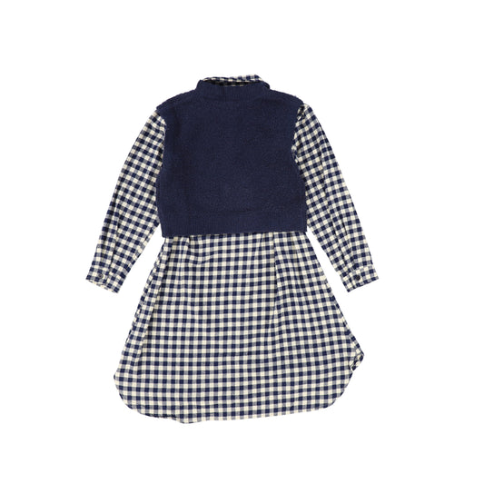 Bace Collection Navy Flannel Gingham Overlay Shirt Dress [FINAL SALE]