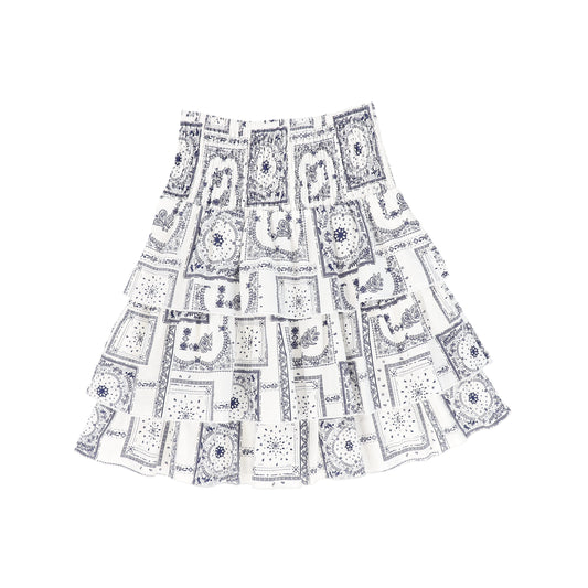 BACE COLLECTION NAVY PAISELY HANDKERCHIEF PRINT LAYERED SKIRT [FINAL SALE]