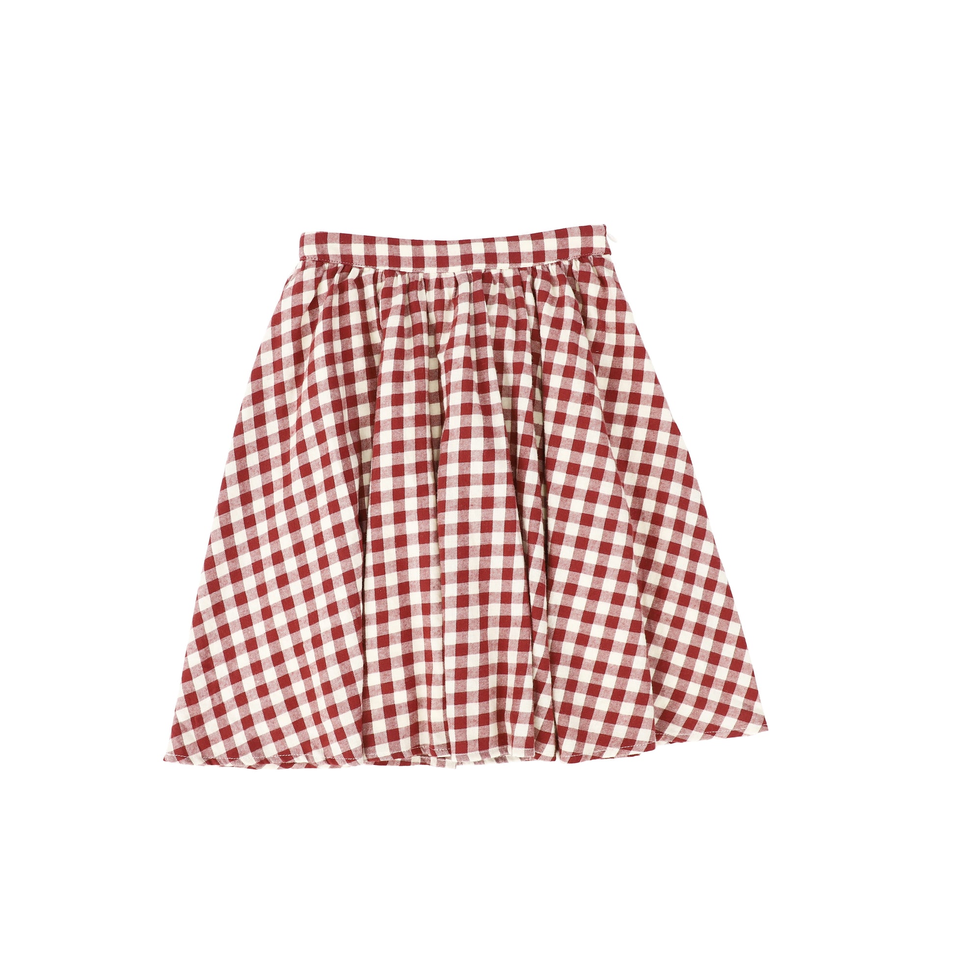 Bace Collection Red Flannel Gingham Waisted Flare Skirt