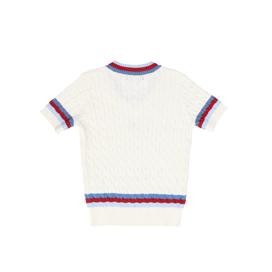 BAMBOO IVORY CABLE KNIT V NECK TRIM SS SWEATER
