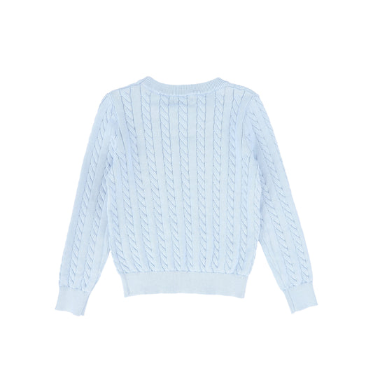 BAMBOO LIGHT BLUE CABLE KNIT SS SWEATER.
