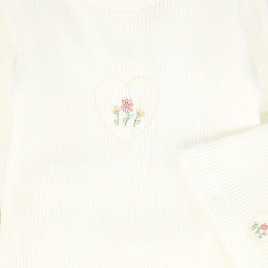 BEBE JOLEE IVORY OUTLINE EMBROIDERED FOOTIE