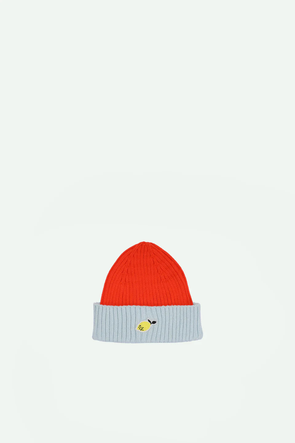 STICKY LEMON ORANGE/BLUE RIBBED KNIT BEANIE
