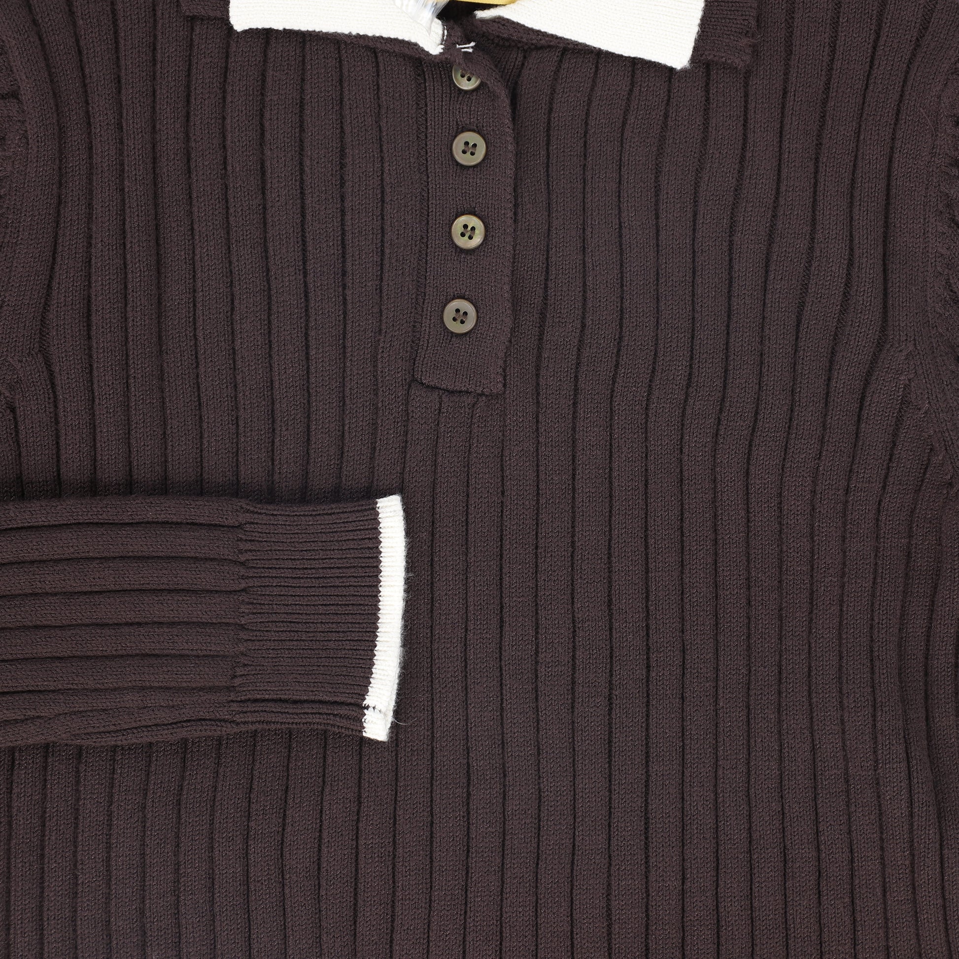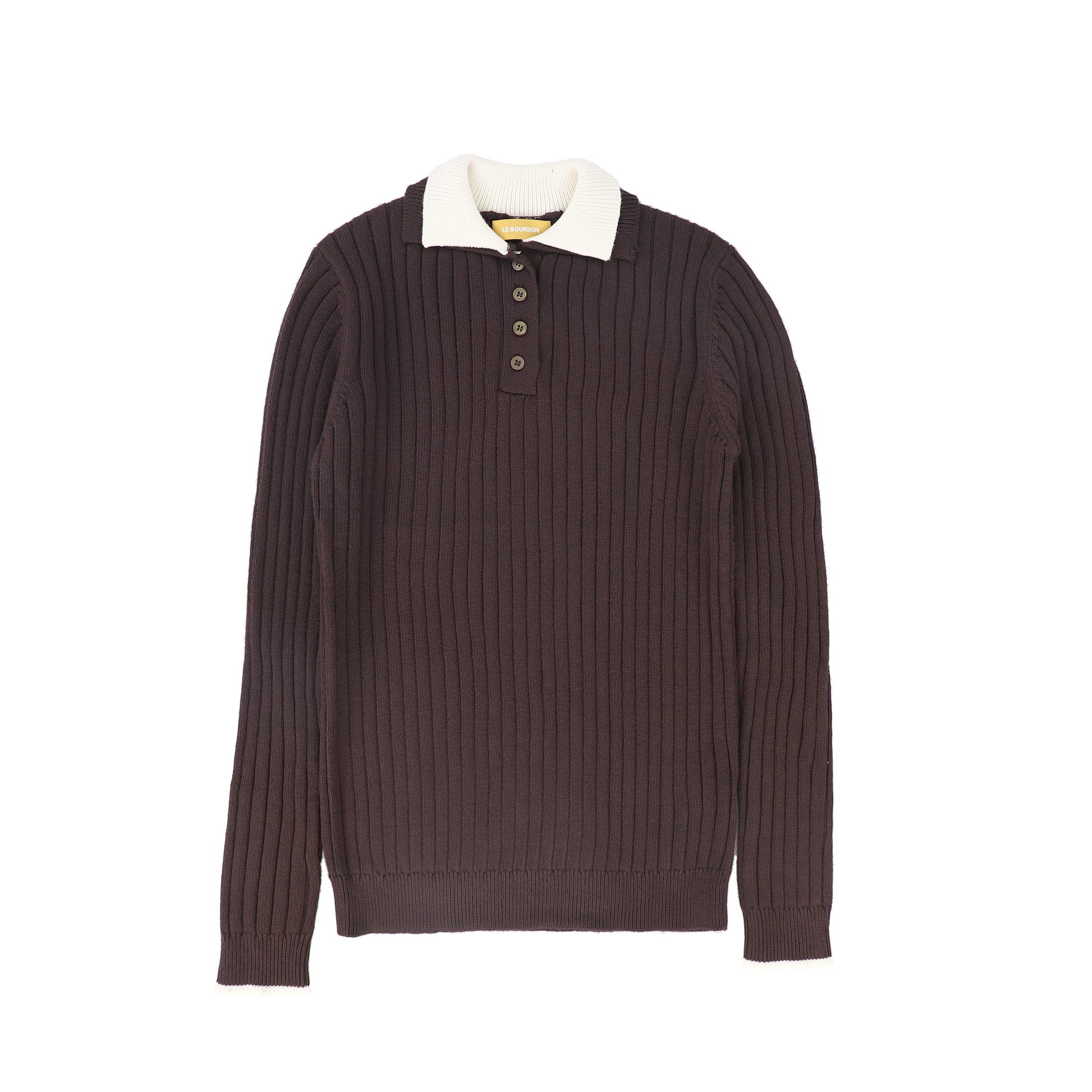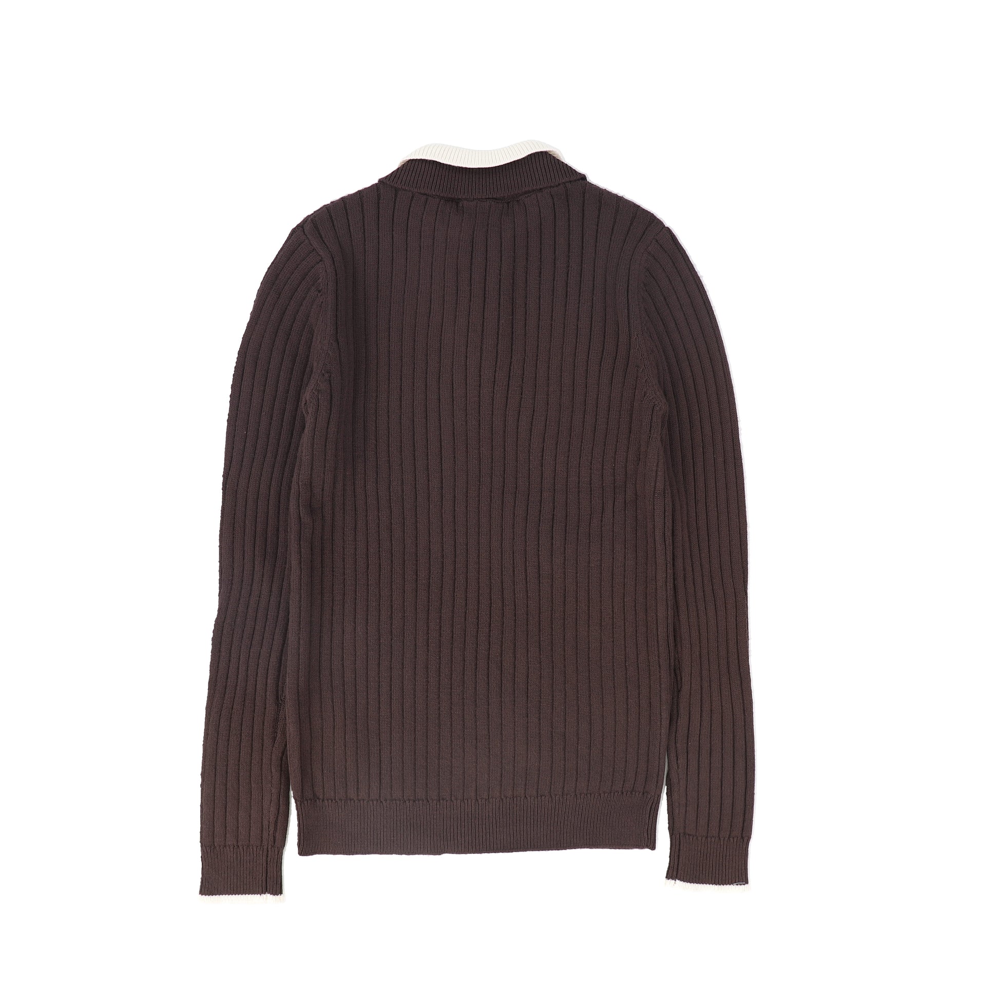 LE BOURDON BROWN WIDE RIBBED COLLAR SWEATER