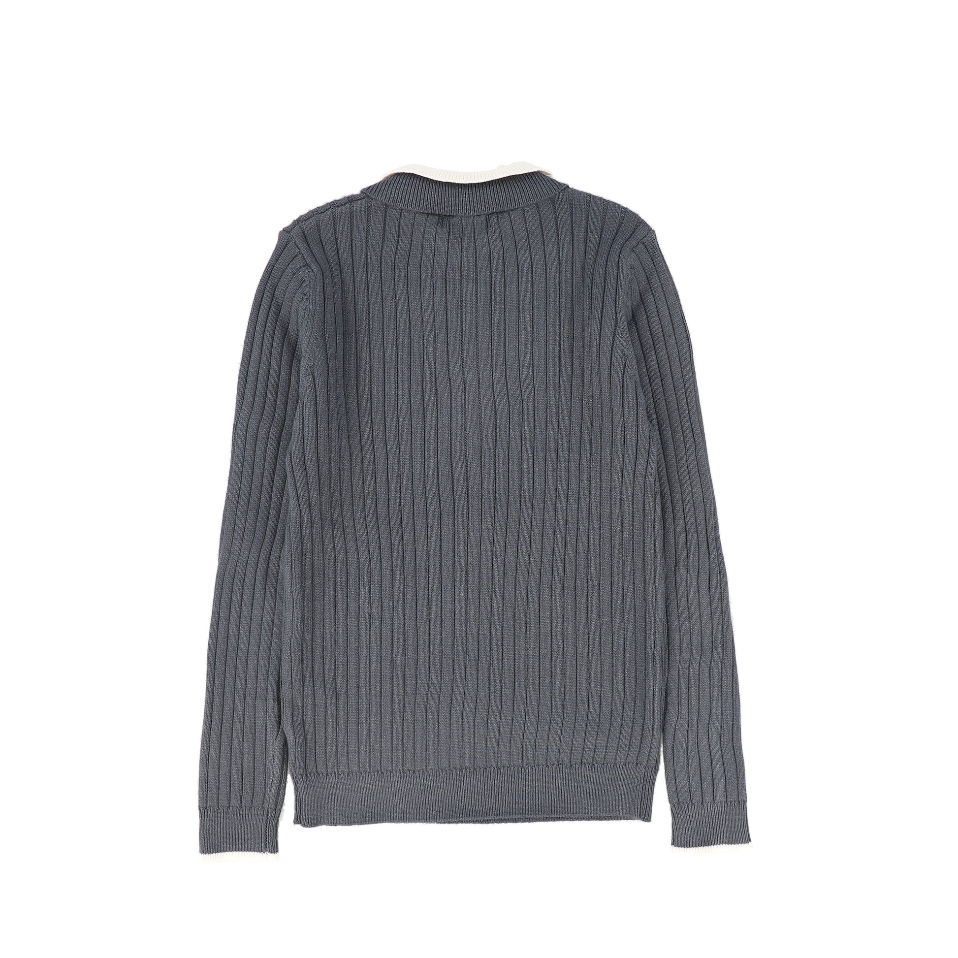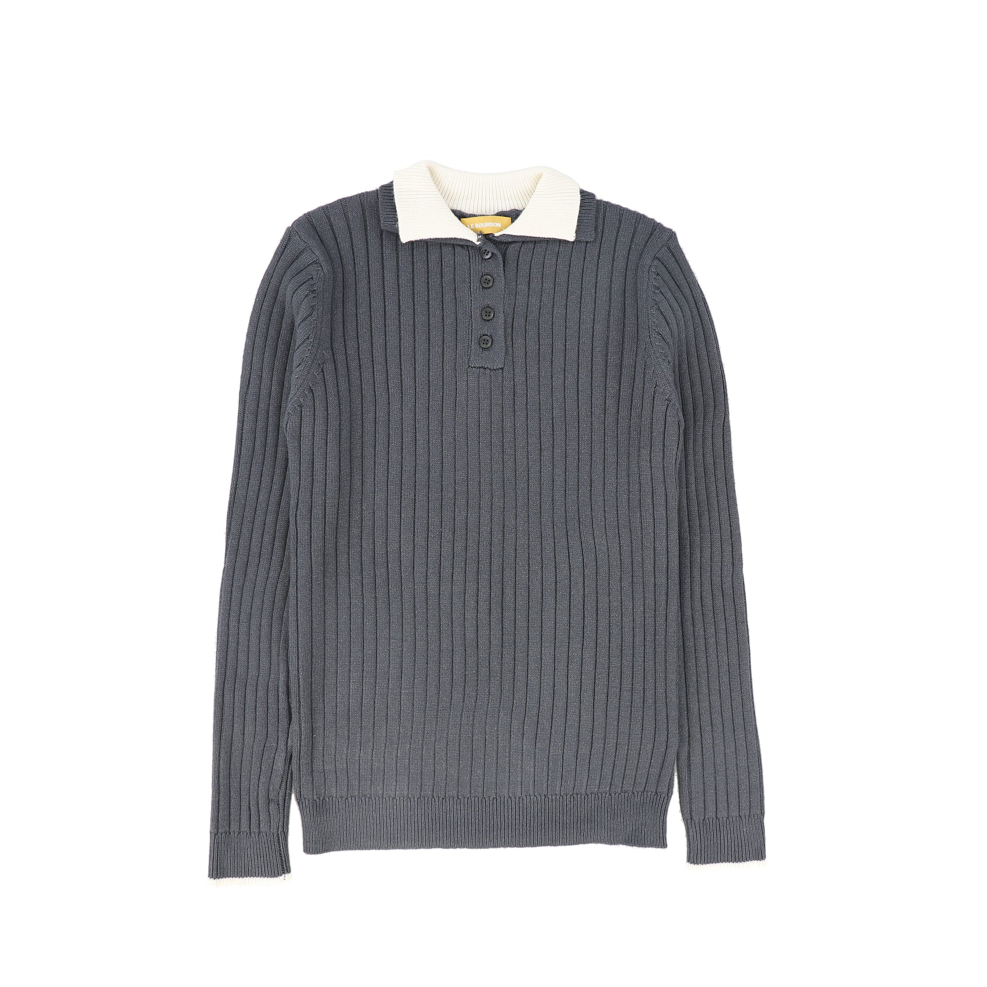LE BOURDON GREY WIDE RIBBED COLLAR SWEATER