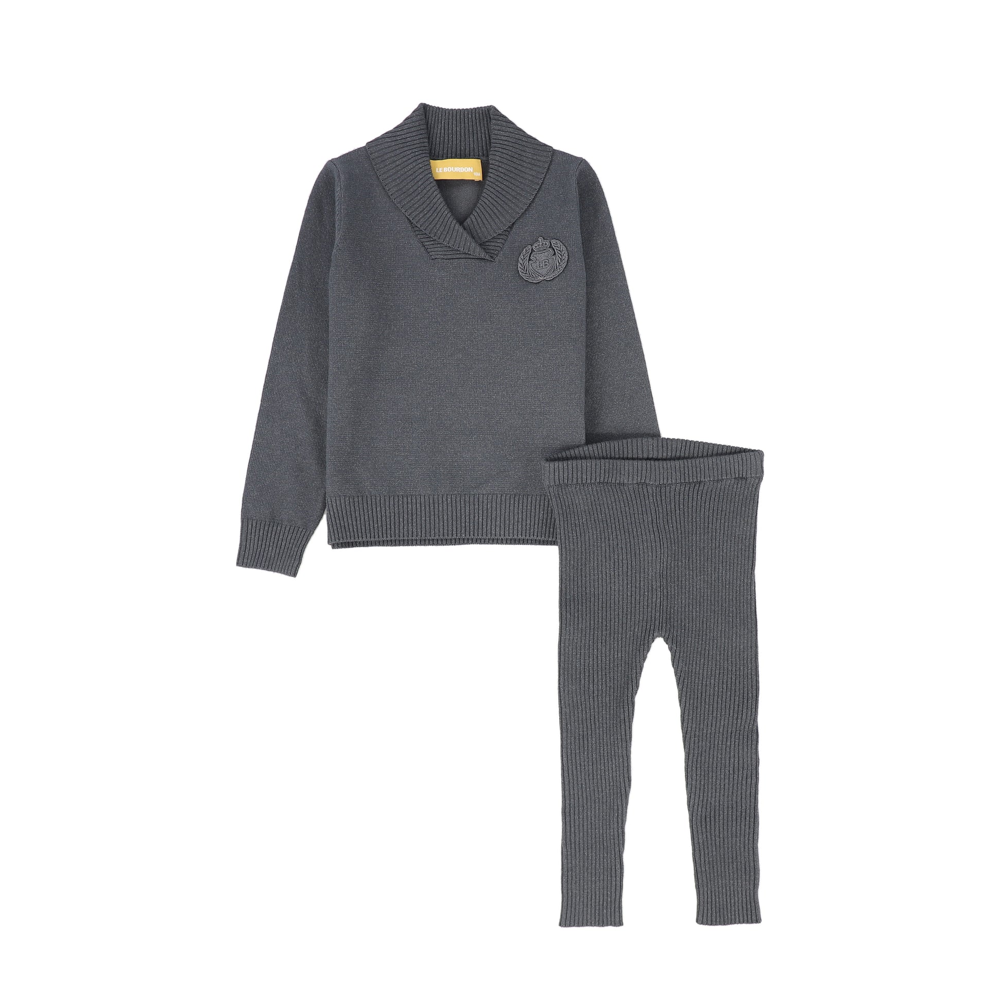 LE BOURDON GREY WRAP NECK SWEATER LEGGINGS SET
