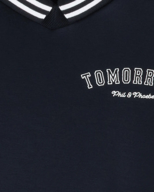 PHIL AND PHOEBE NAVY VARSITY WORDED SWEATSHIRT