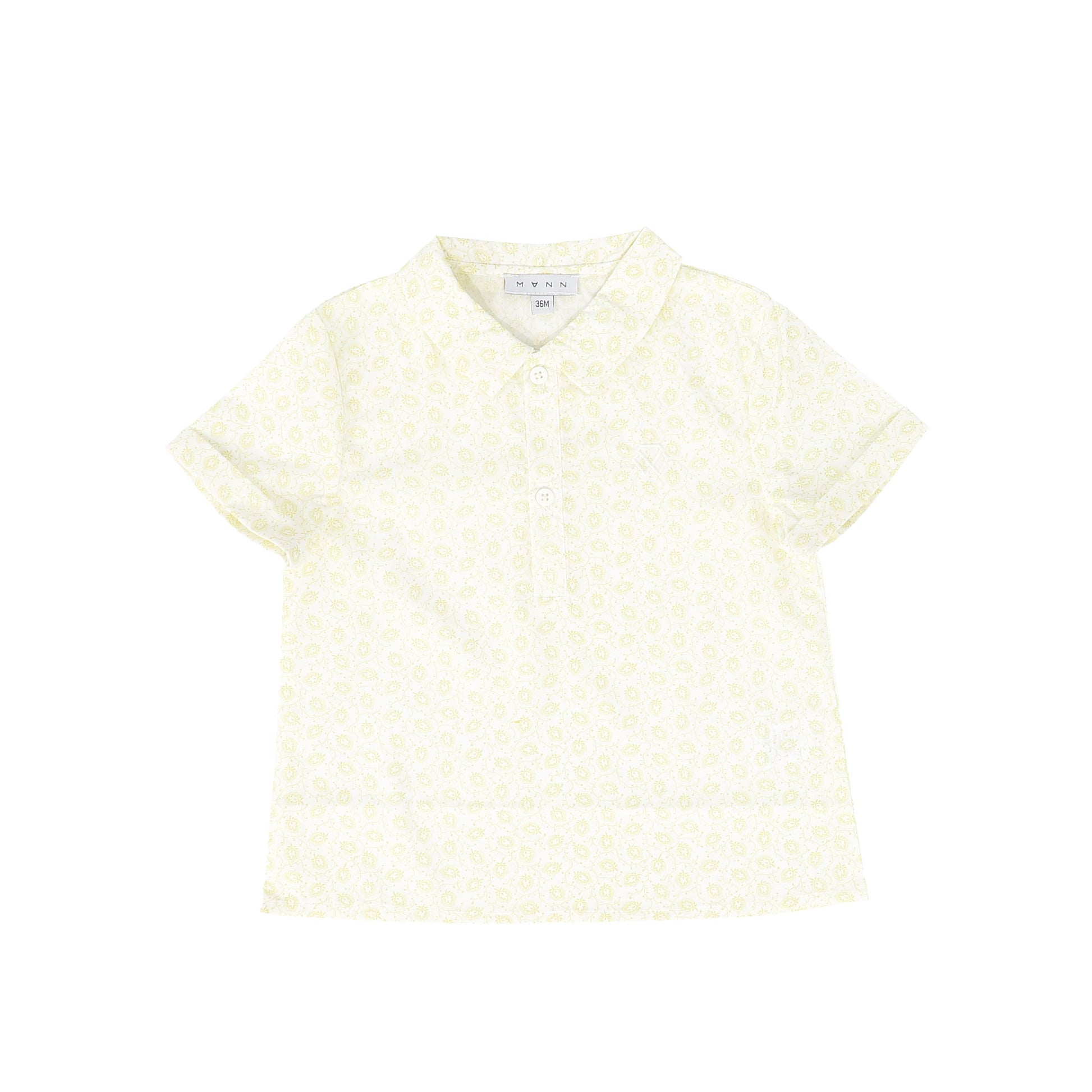 MANN WHITE/YELLOW LEAF PRINT COLLAR SHIRT