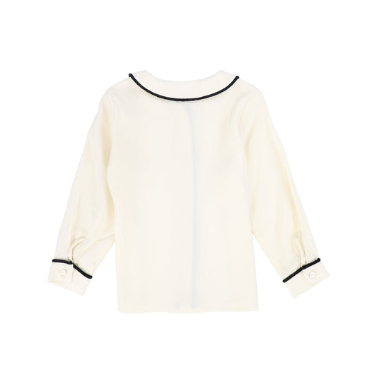 FRANCESCA GUILIANO CREAM/BLACK PIPED SILK BLOUSE