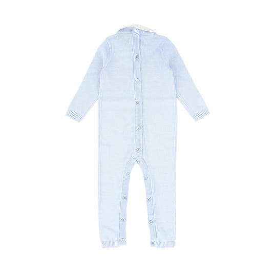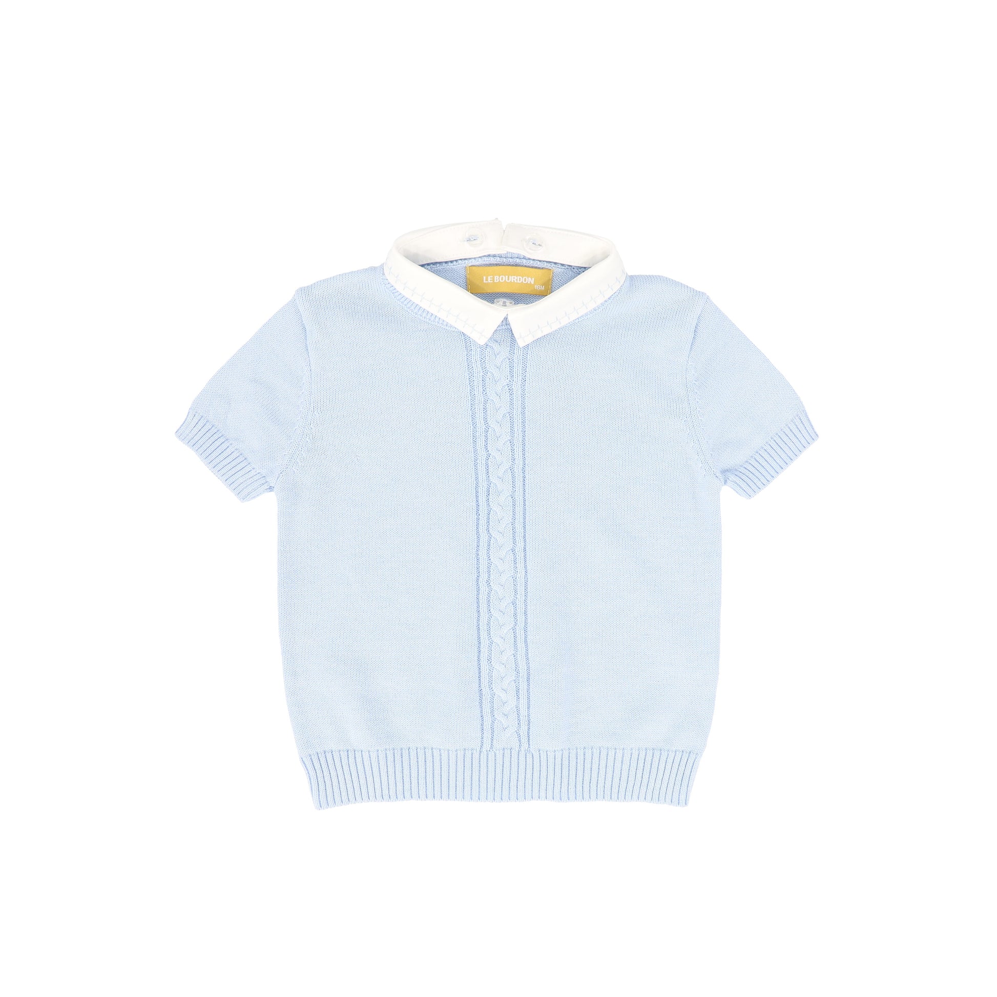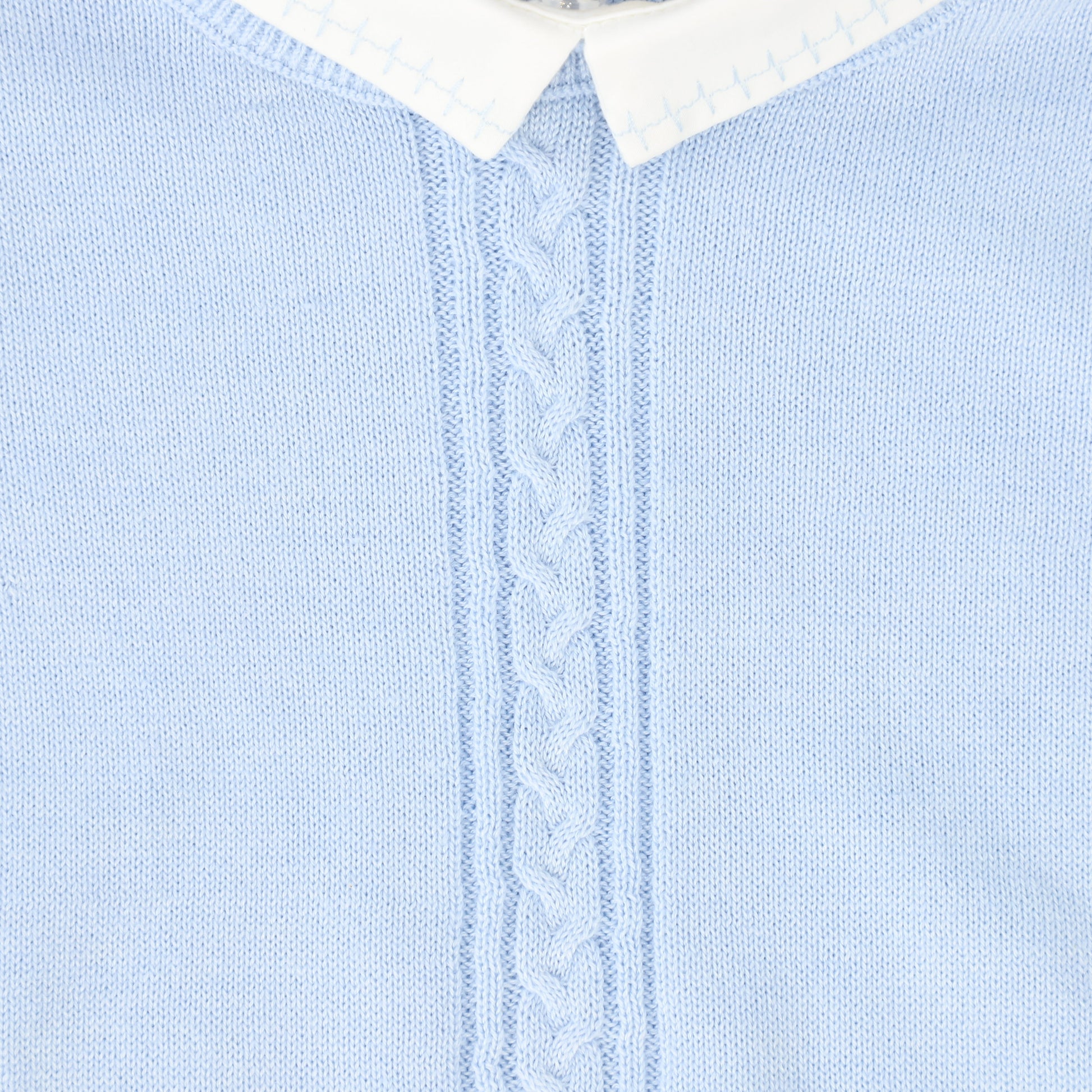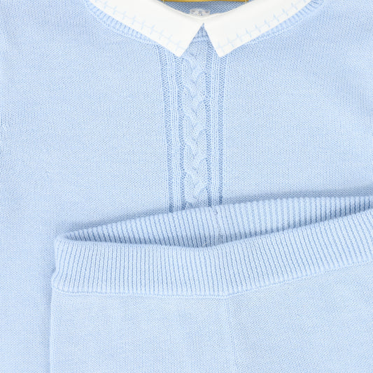 LE BOURDON BLUE KNIT CABLE STRIPE COLLAR SWEATER