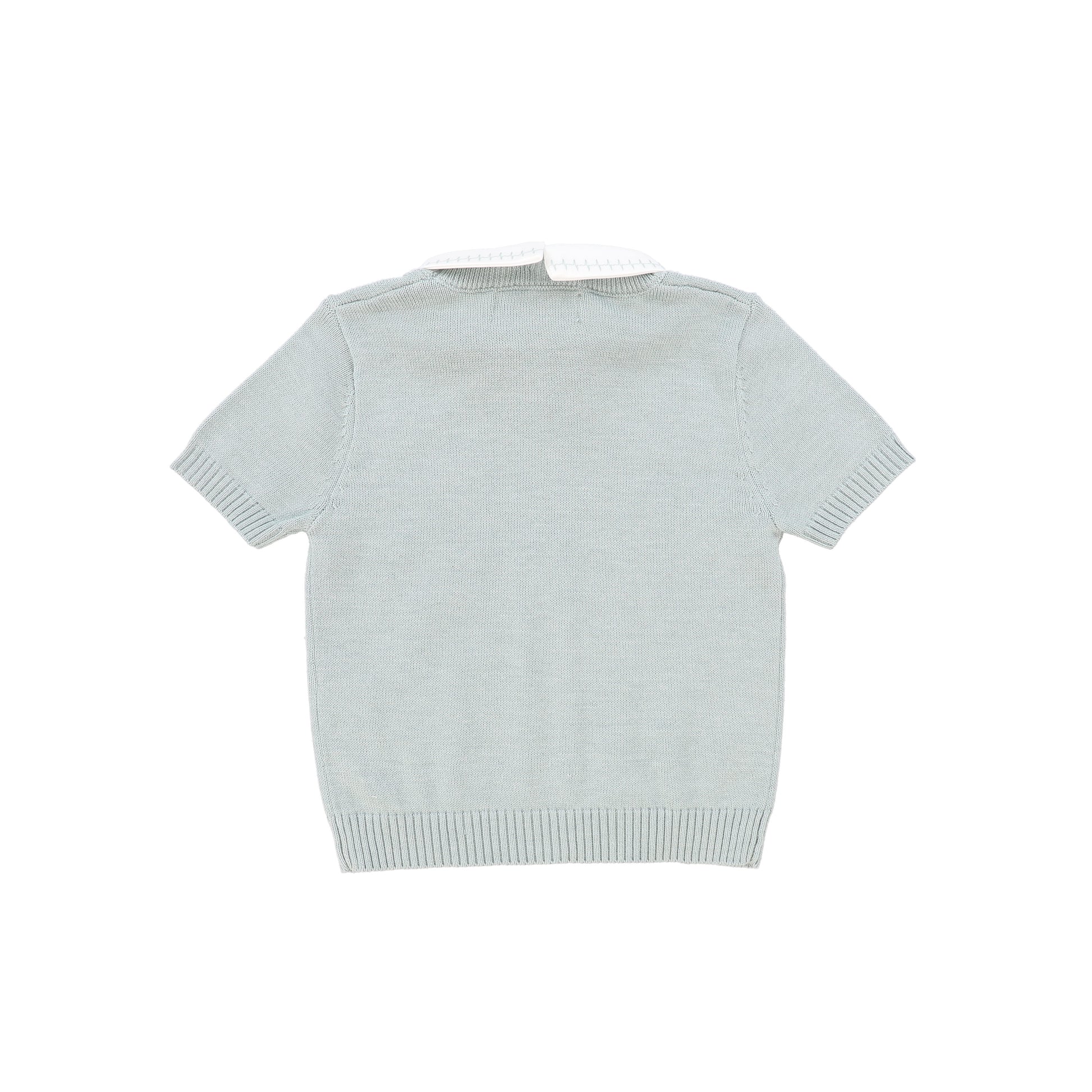 LE BOURDON GREEN KNIT CABLE STRIPE COLLAR SWEATER