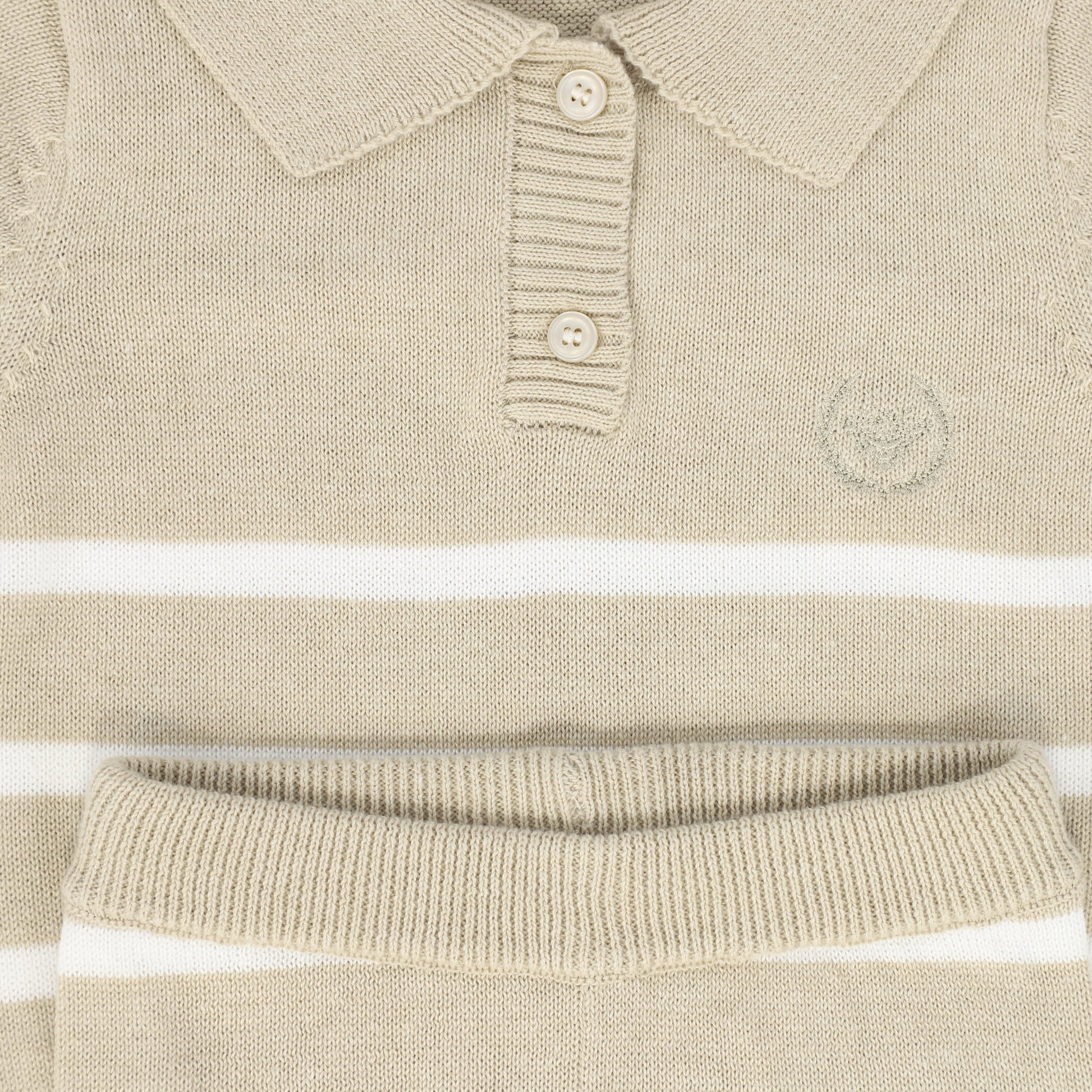 LE BOURDON TAN STRIPE TRIM KNIT SHORTS SET