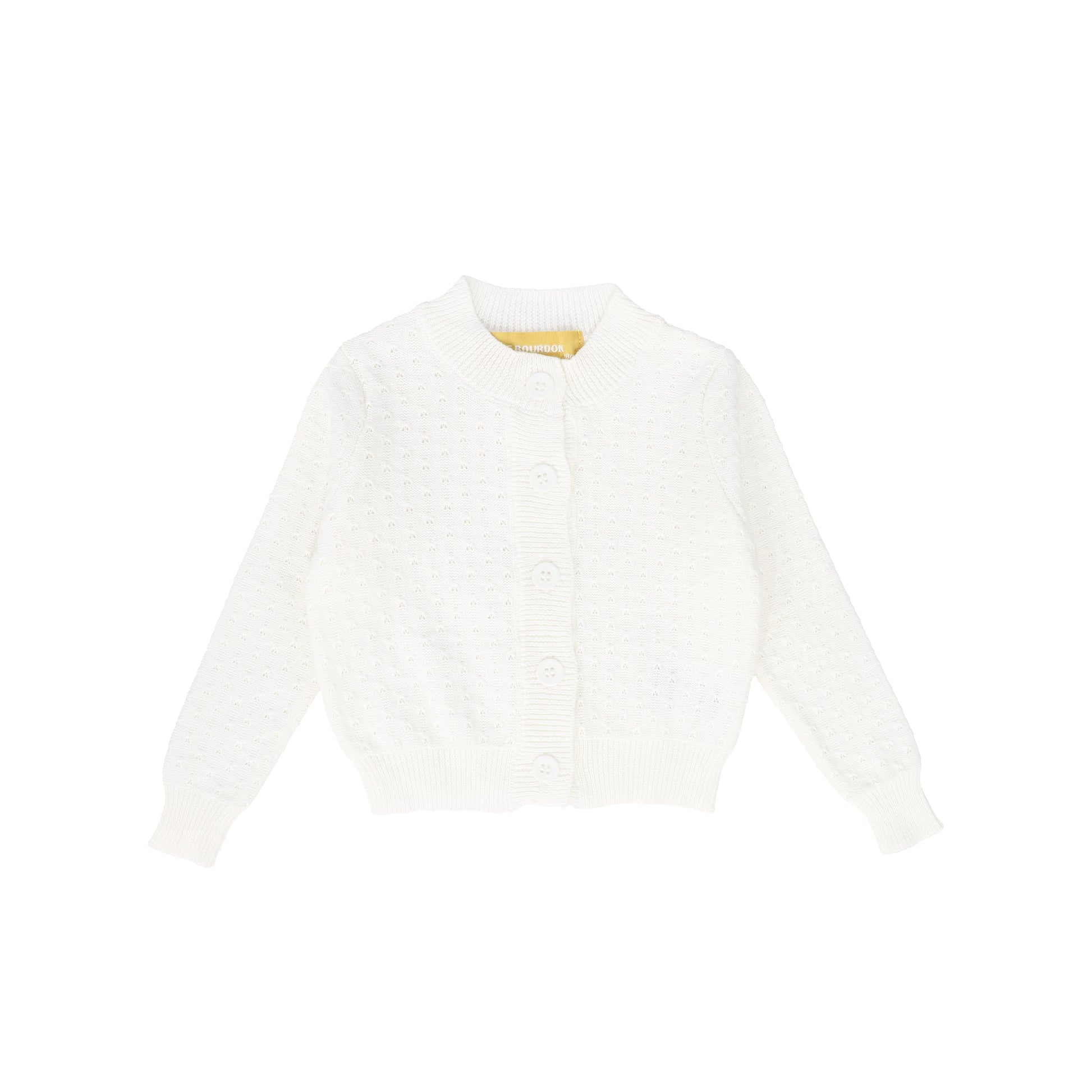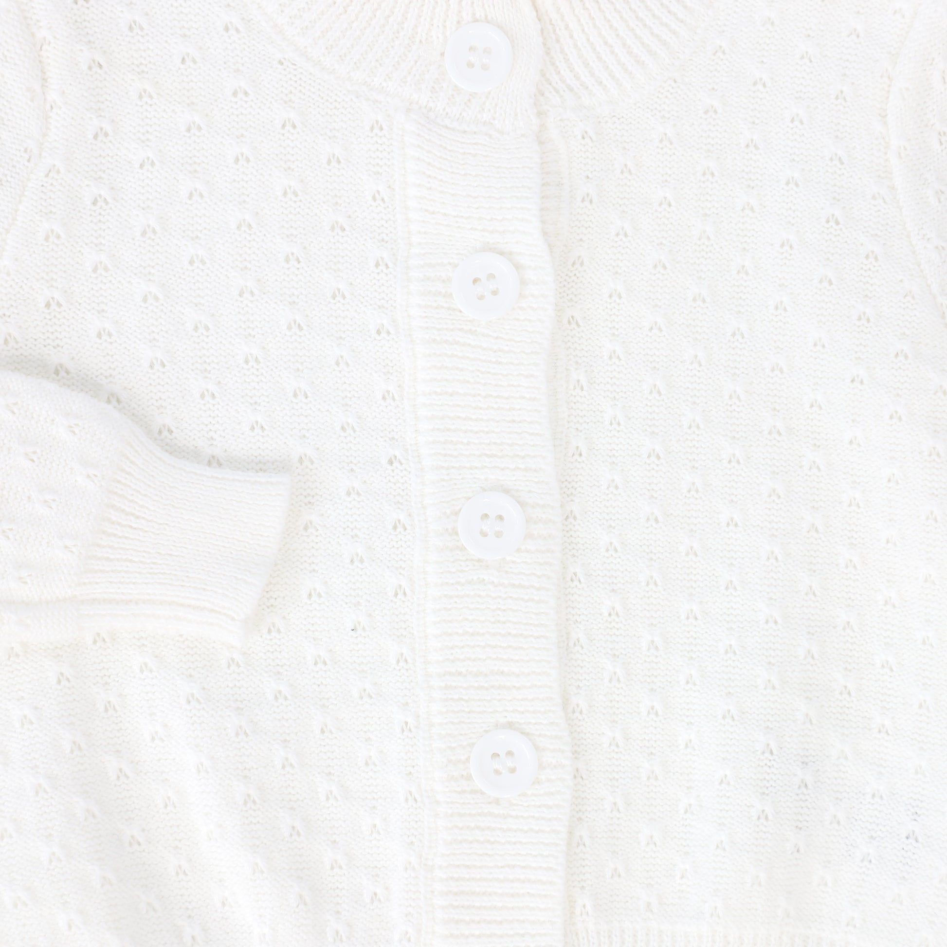 LE BOURDON WHITE POINTELLE BUTTON CARDIGAN