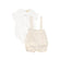 LE BOURDON TAN STRIPE TRIM KNIT SHORTS SET