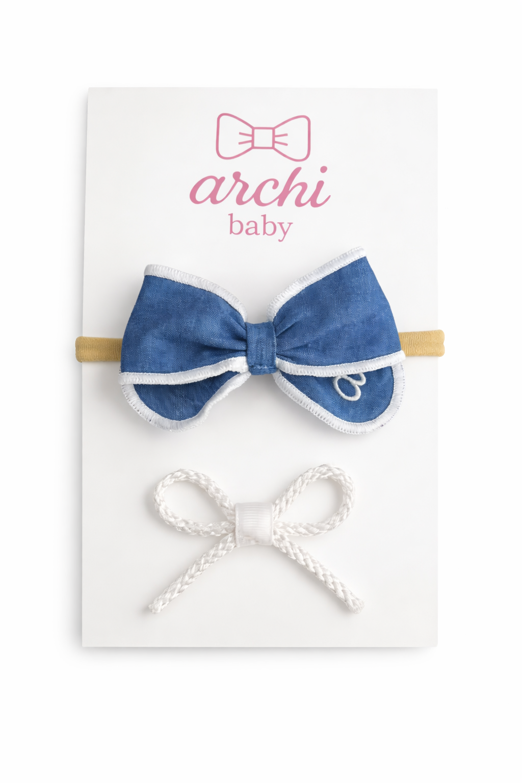 ARCHI BABY BLUE DENIM + WHITE ROPE SOFT HEADBAND