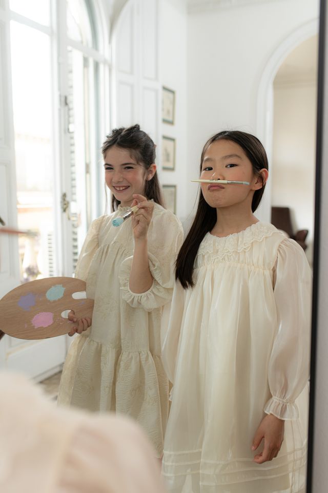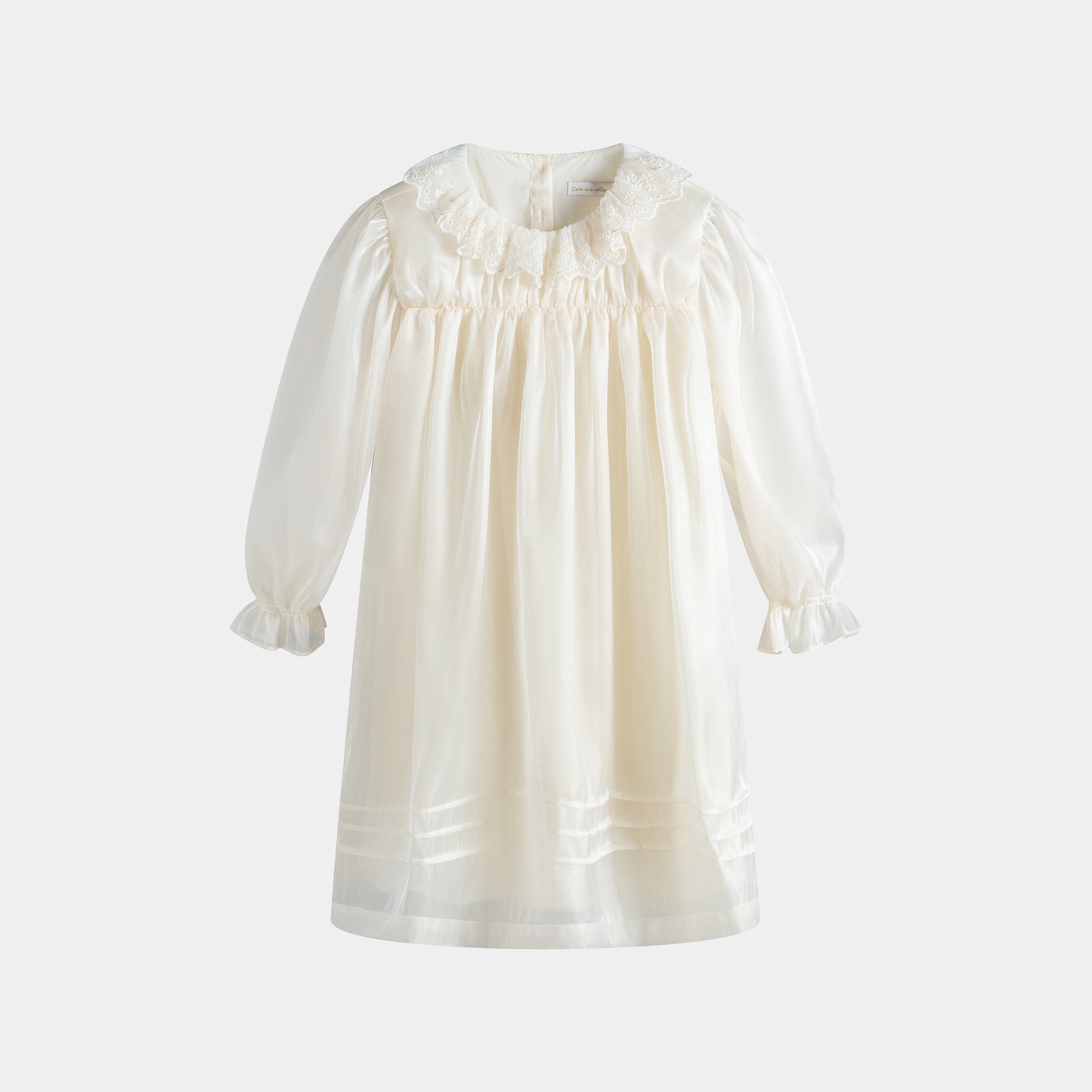 CERA UNA VOLTA CREAM RUFFLE COLLAR PLEATED DRESS