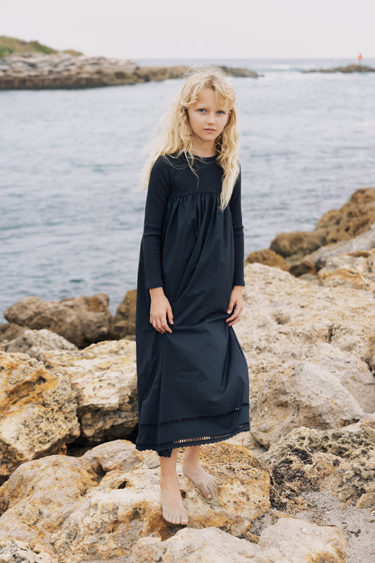 KIN & KIN BLACK TEXTURED SS MAXI DRESS