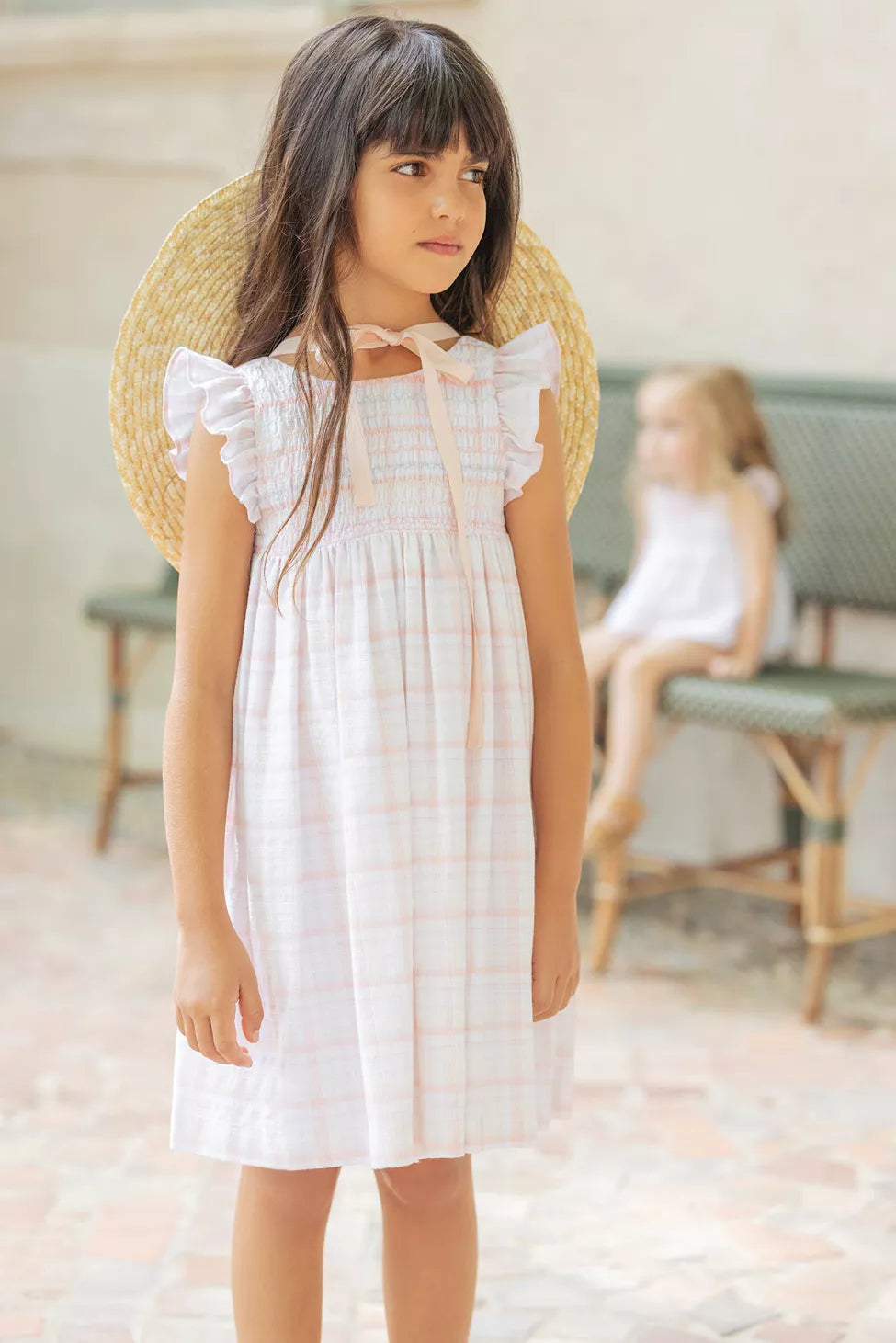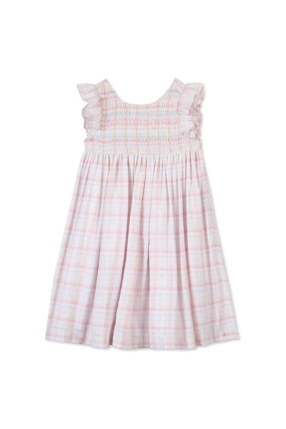 TARTINE ET CHOCOLAT LIGHT PINK PLAID SMOCKED DRESS