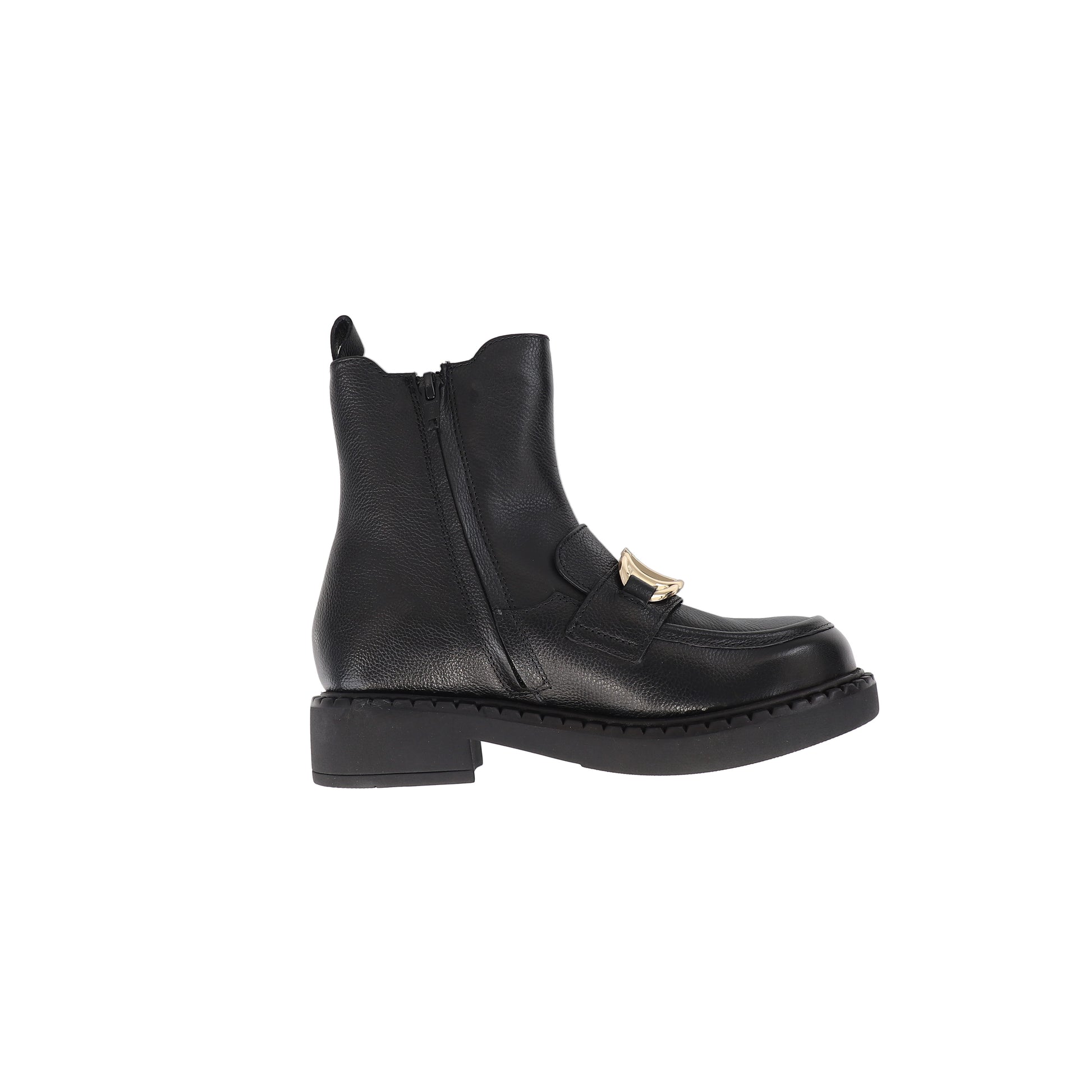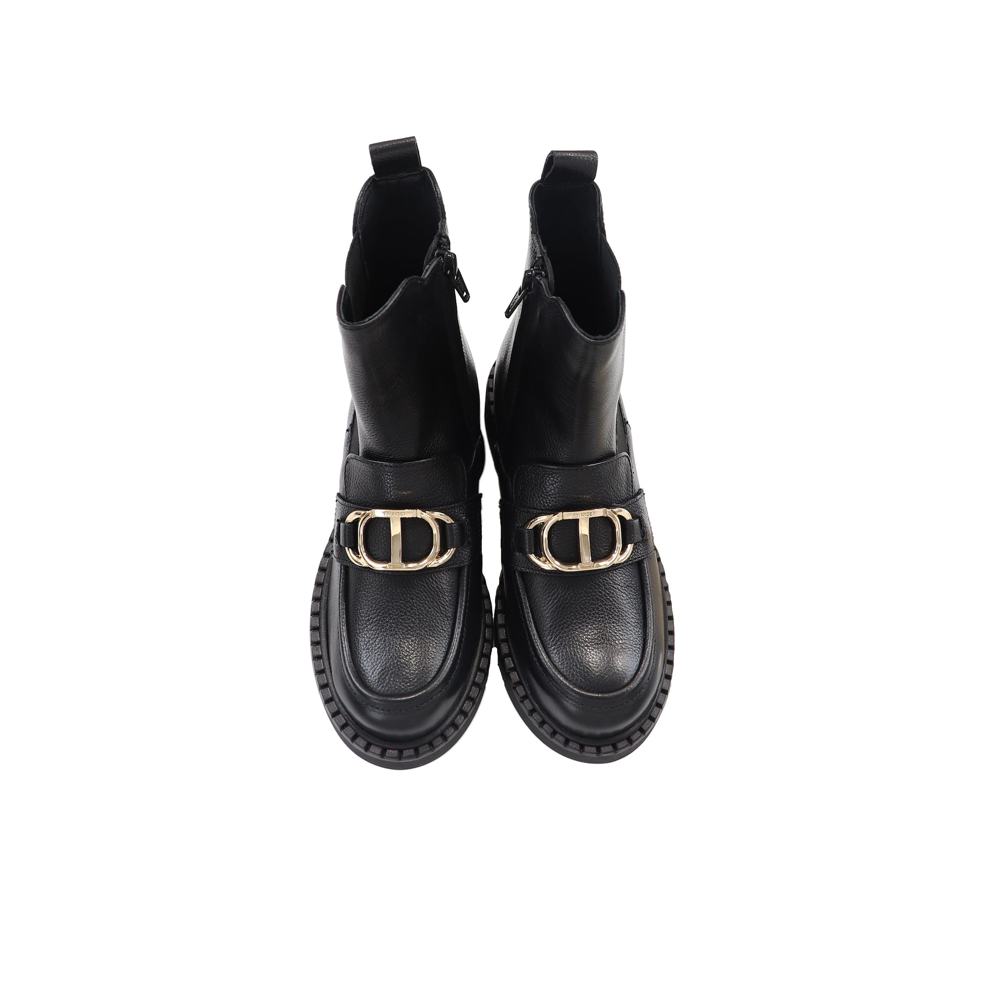 TWINSET BLACK LEATHER LOGO BUCKLE BOOTIE