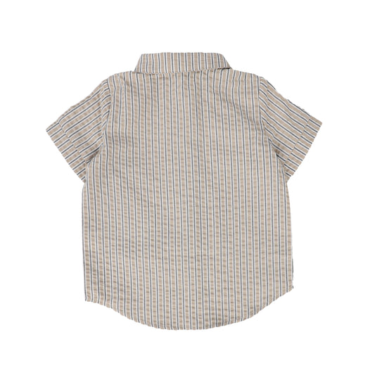 BACE COLLECTION WHITE/TAN THICK STRIPED BUTTON DOWN BLOUSE [FINAL SALE]