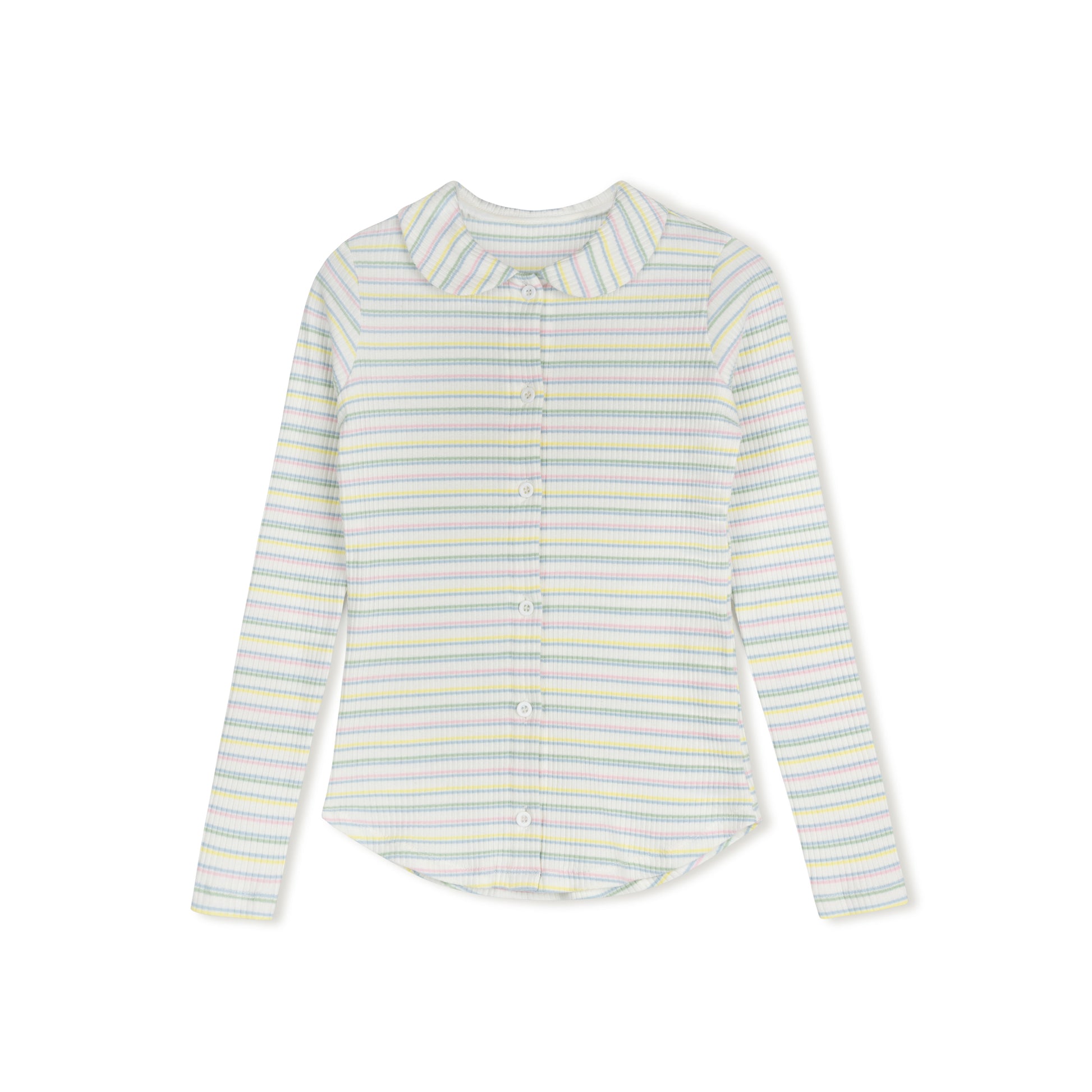 VELVETTE LABEL MULTI COLOR STRIPE COLLAR T-SHIRT