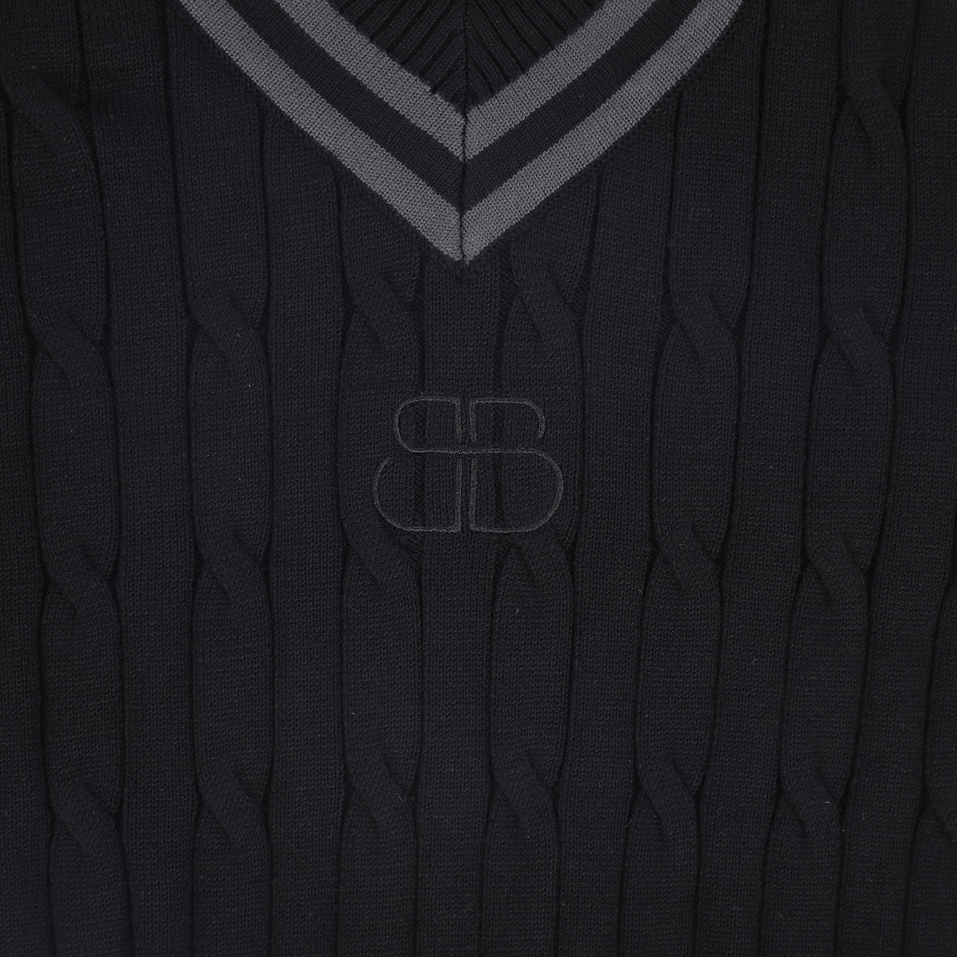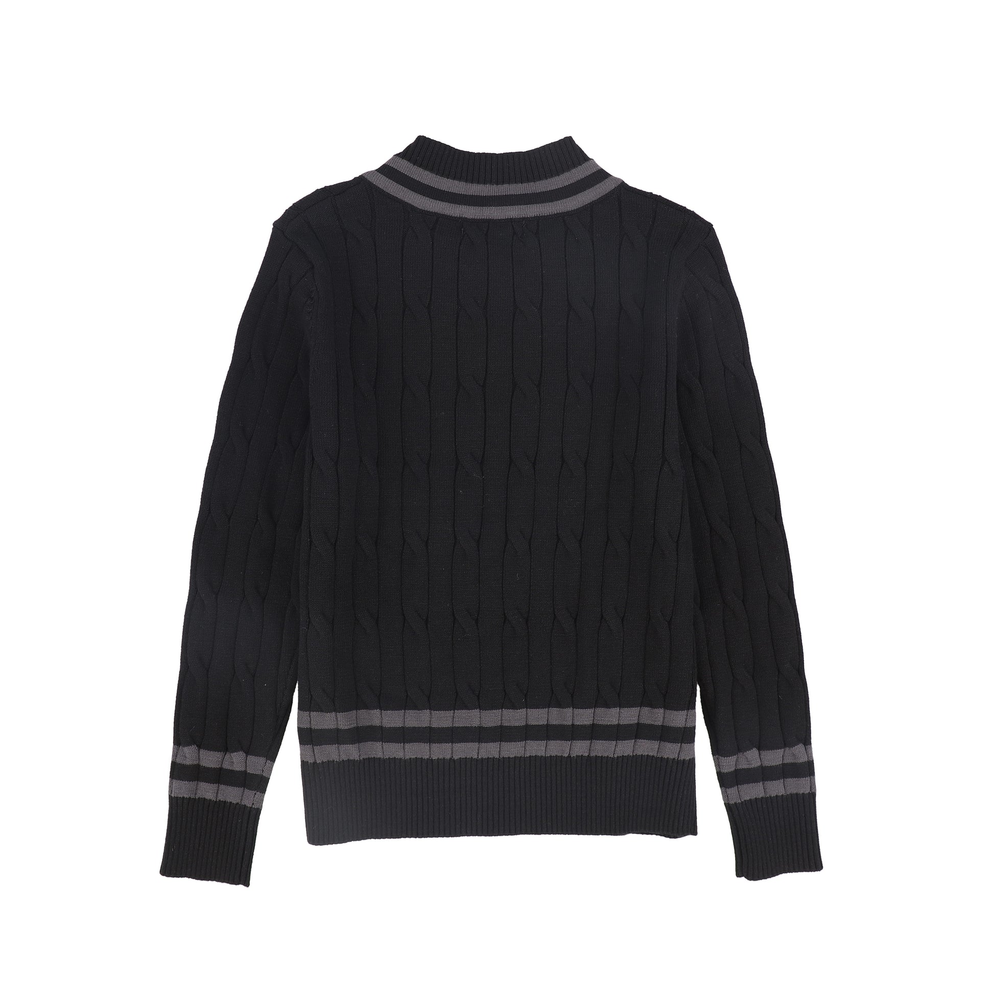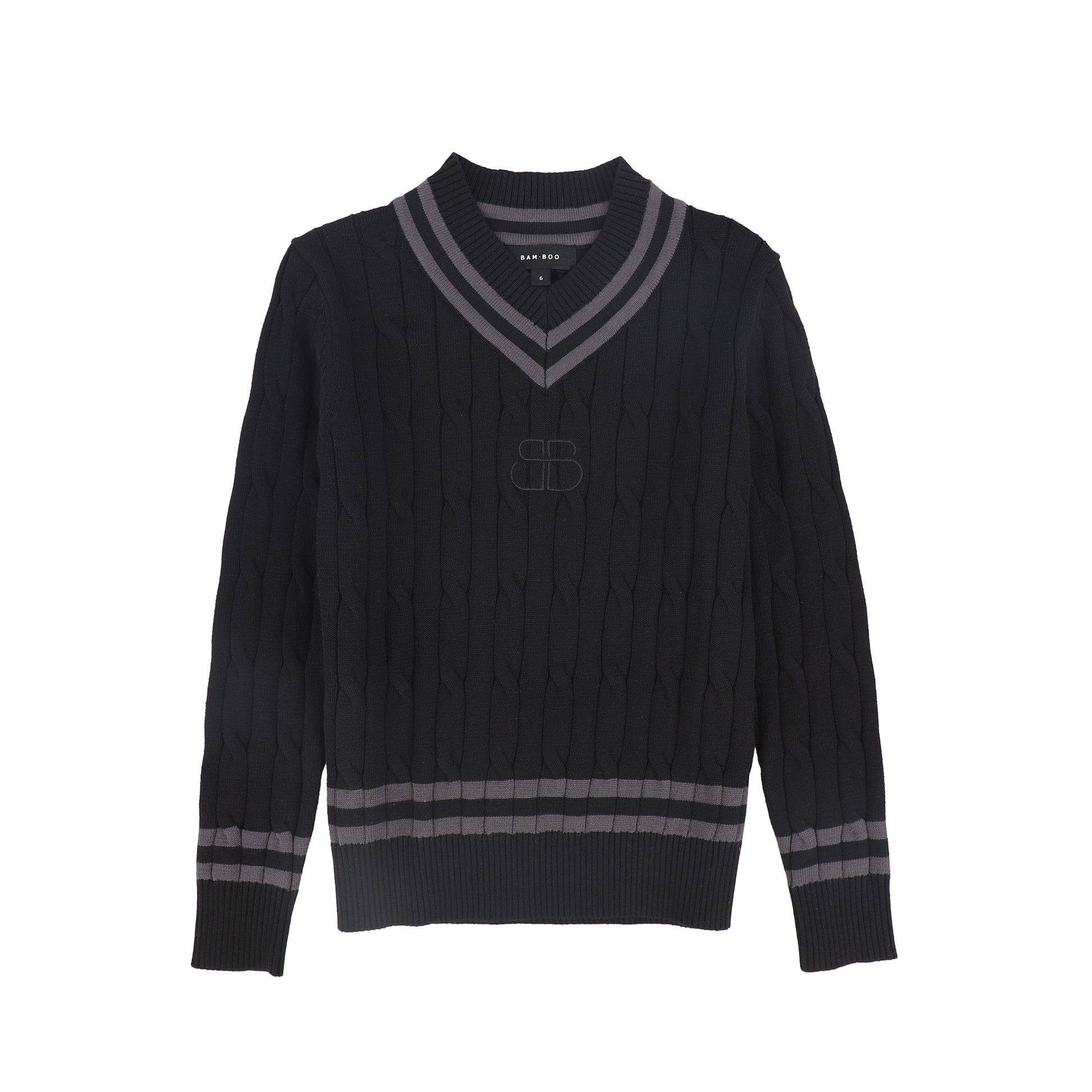 BAMBOO BLACK CABLE KNIT STRIPE TRIM SWEATER