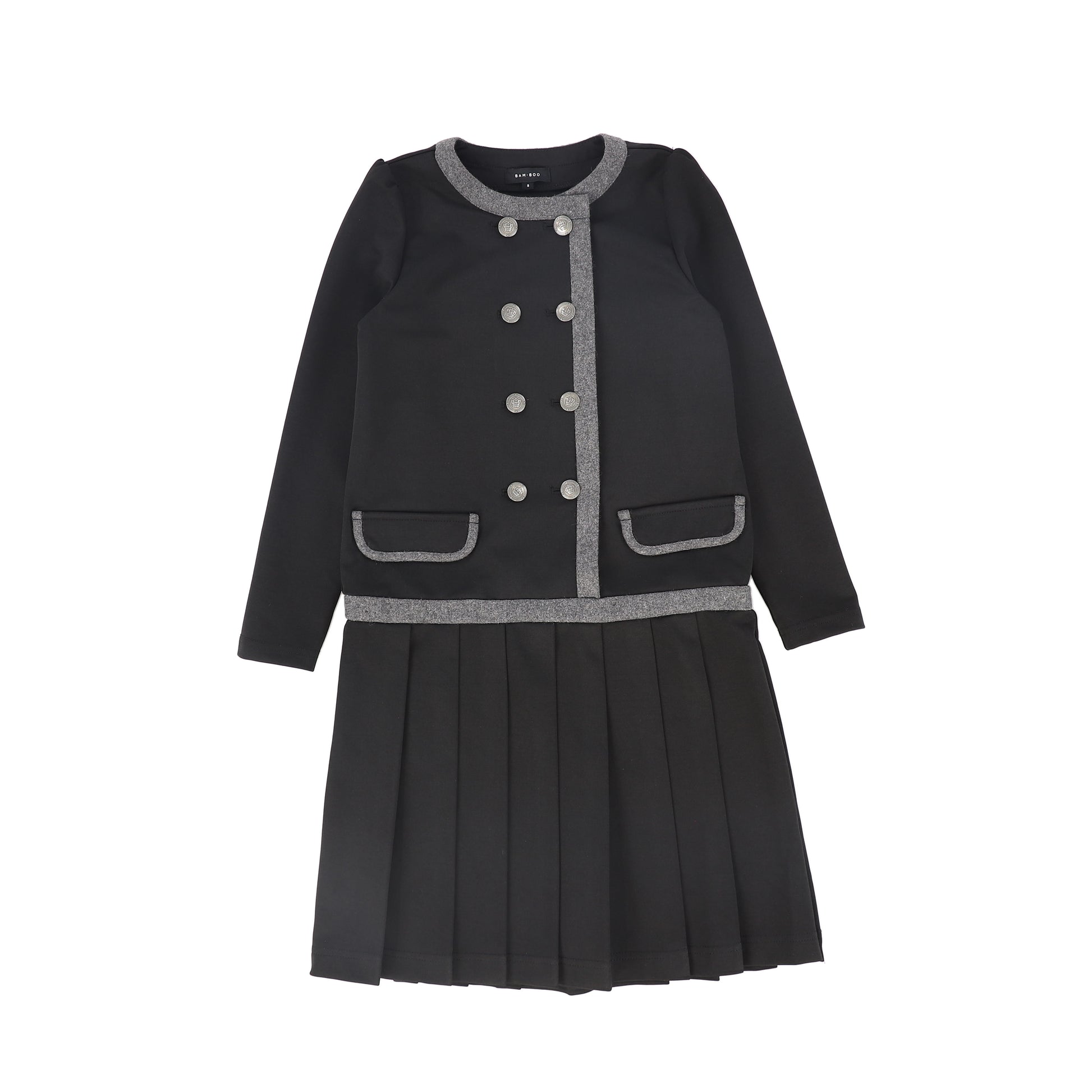 BAMBOO BLACK DOUBLE BREASTED PLEAT DRESS