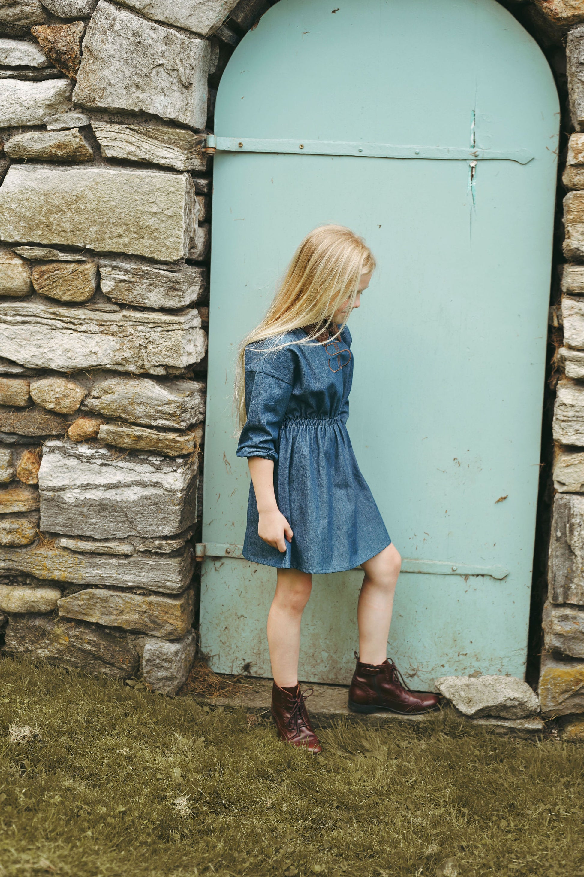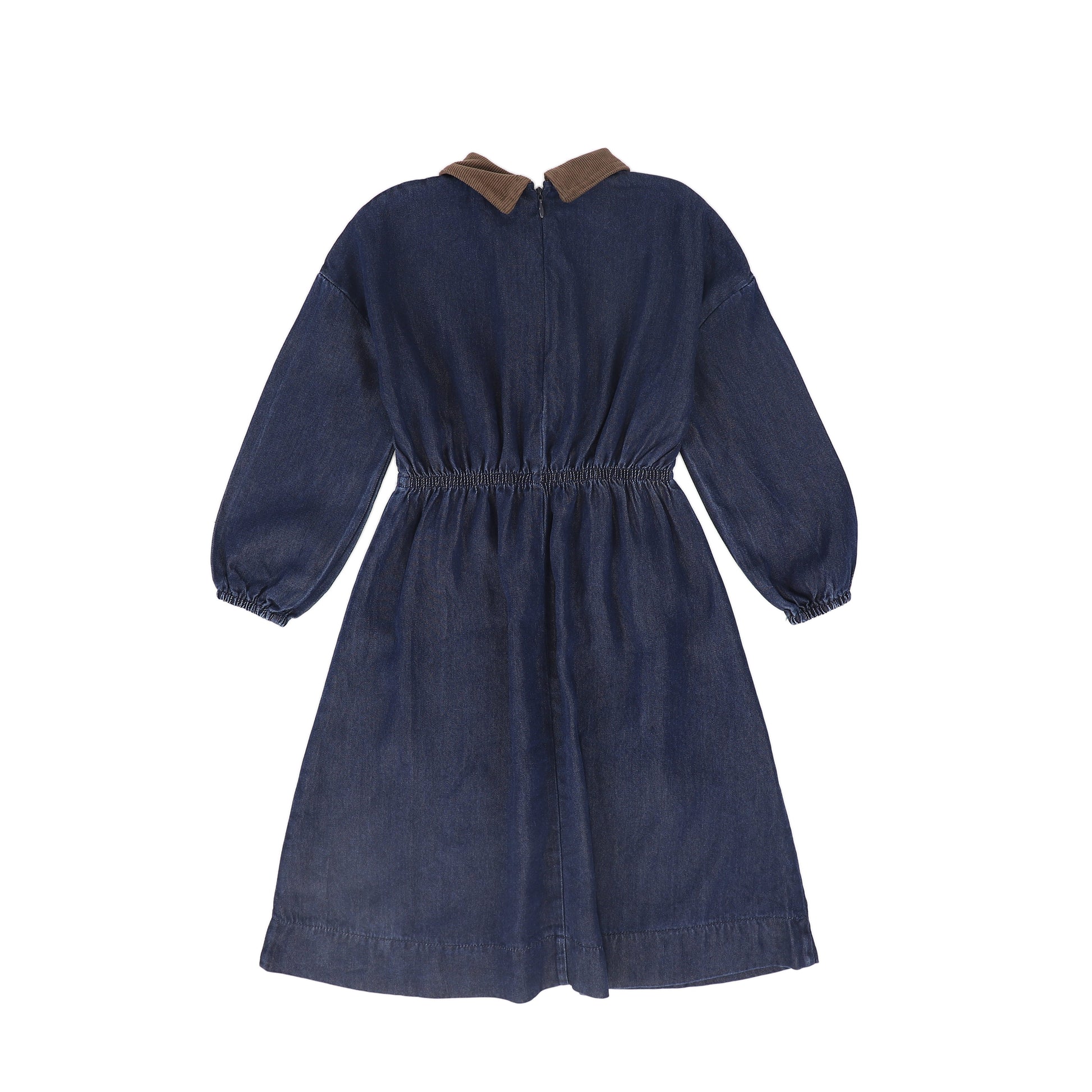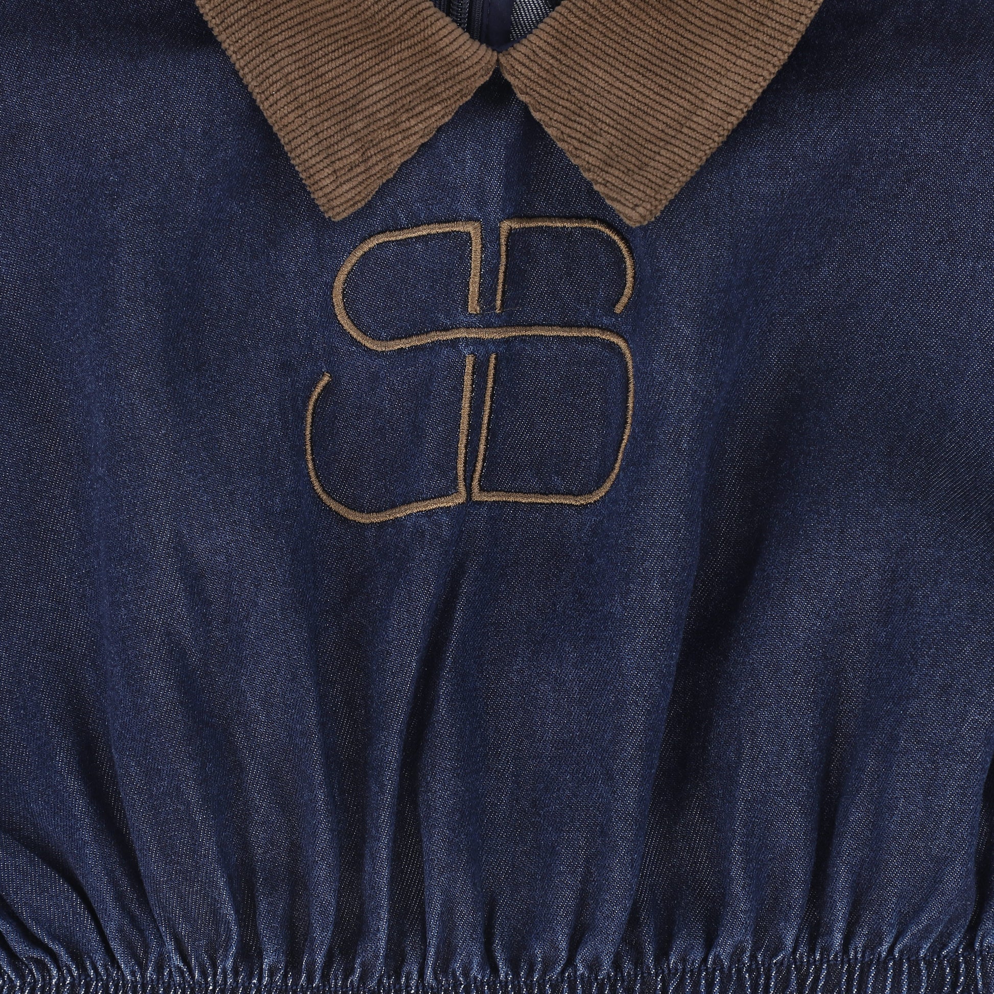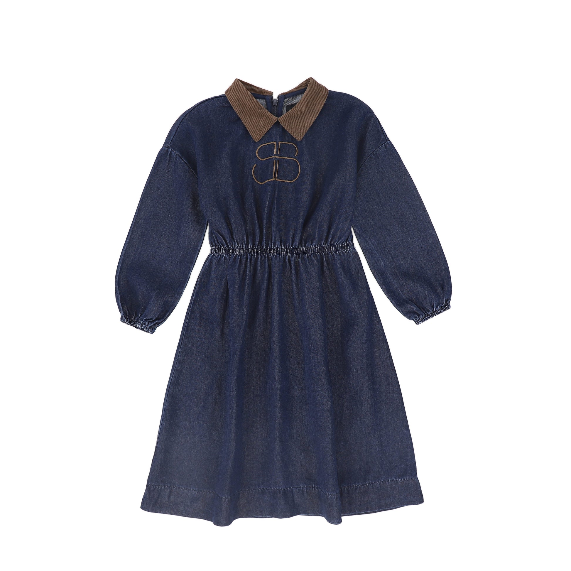 BAMBOO BLUE DENIM EMBROIDERED LOGO WAISTED DRESS