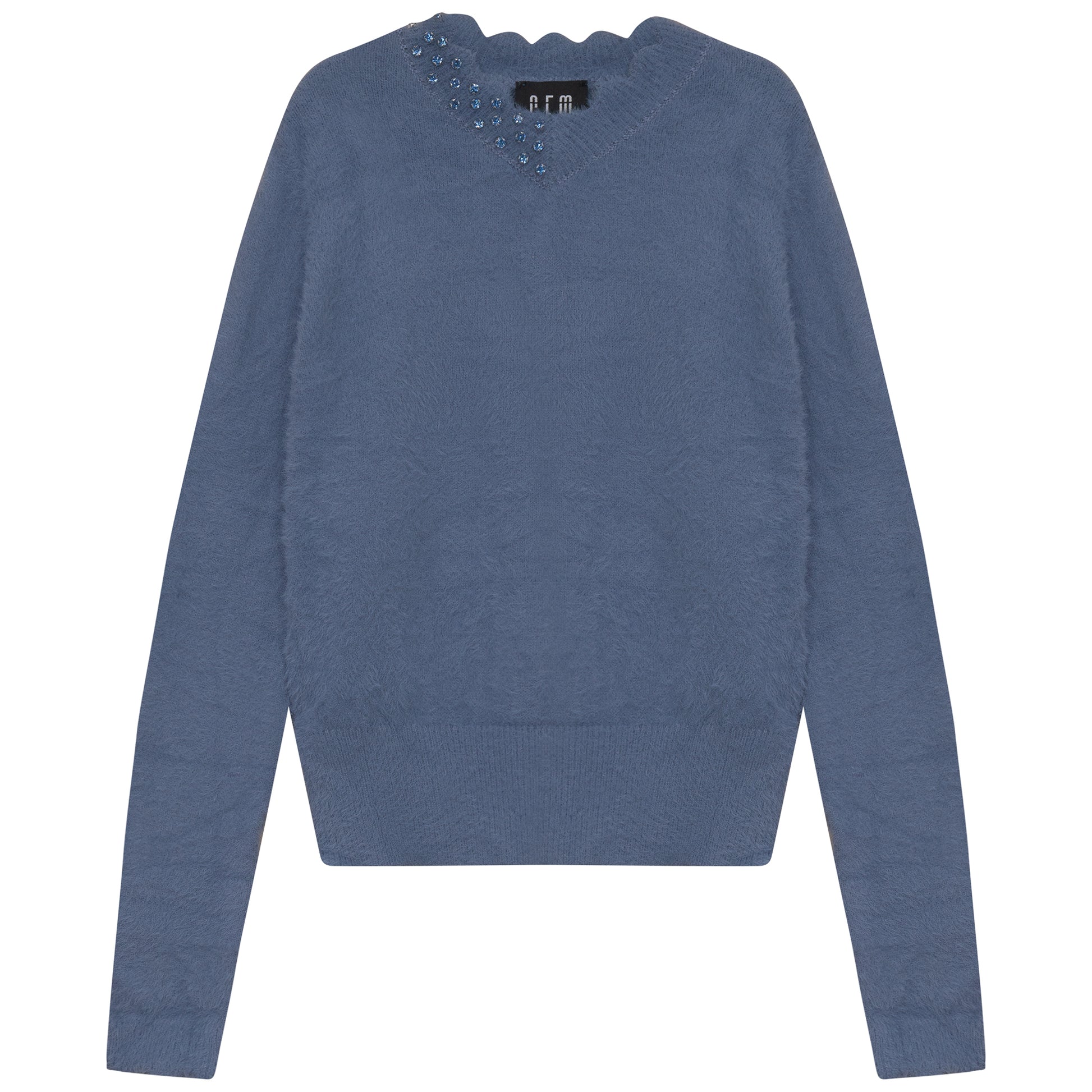 GEM BLUE STONE TRIM PLUSH SWEATER