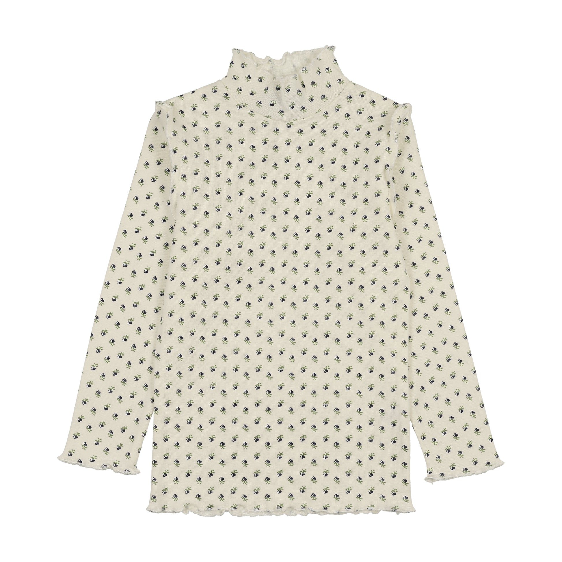 KIN & KIN BLUE TULIP PRINT SCALLOP MOCKNECK